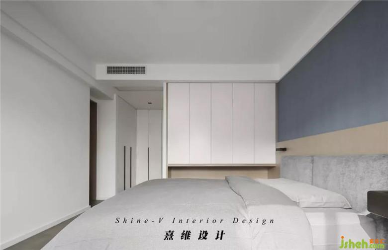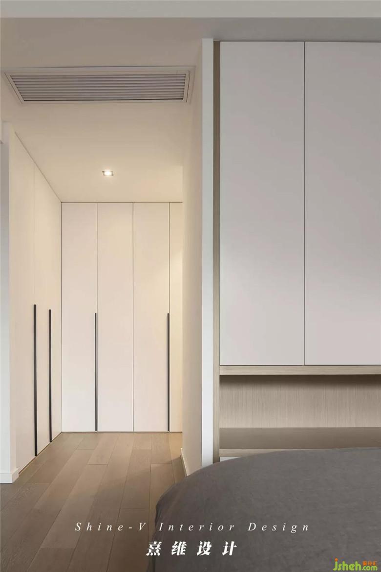 ▲除了地柜外,上方装修公司匹配相应吊柜解决当季衣服收纳的问题。斜后方衣帽间柜体由于墙体拆除与主卫的缩减可以更充分的发挥所长。主卧内柜体的白色迎合明亮的环境,为理想生活完成必备的实用部分。