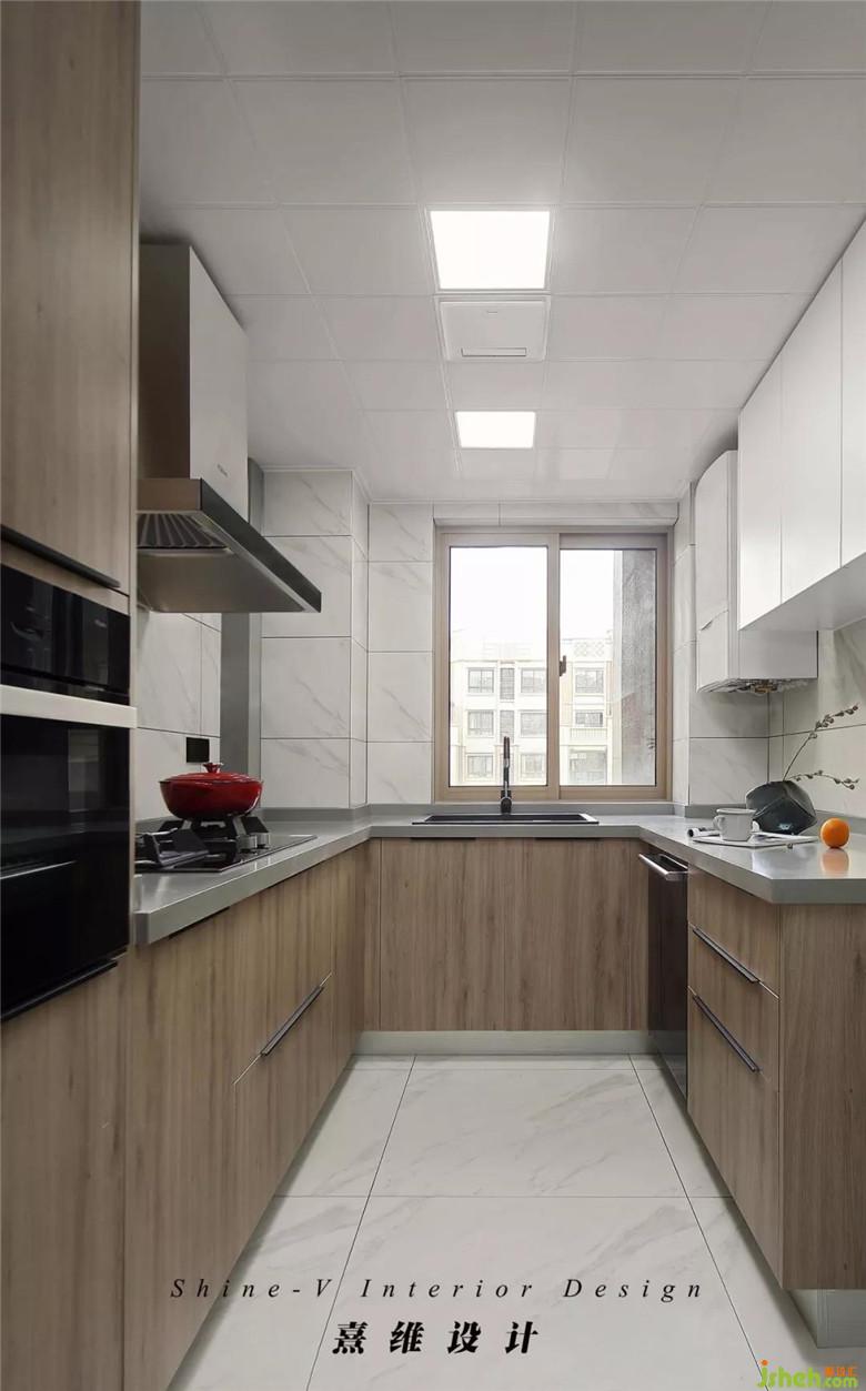 ▲U形橱柜充分利用空间,也是最节省操作时间的厨房布局,抽屉与柜体相结合,收纳功能全面。装上进口双饰面门板,自然的木色与纹理呈现出厨房的美观与大方。