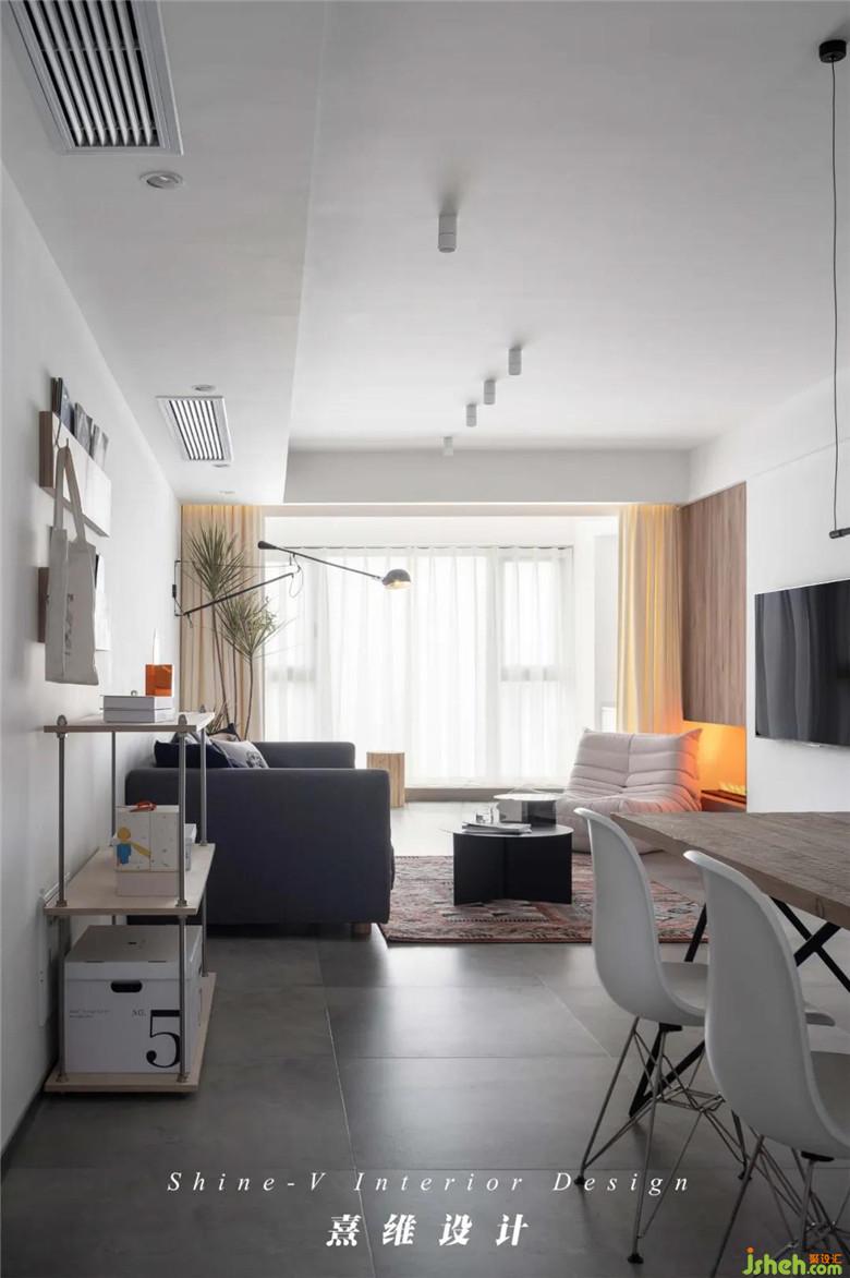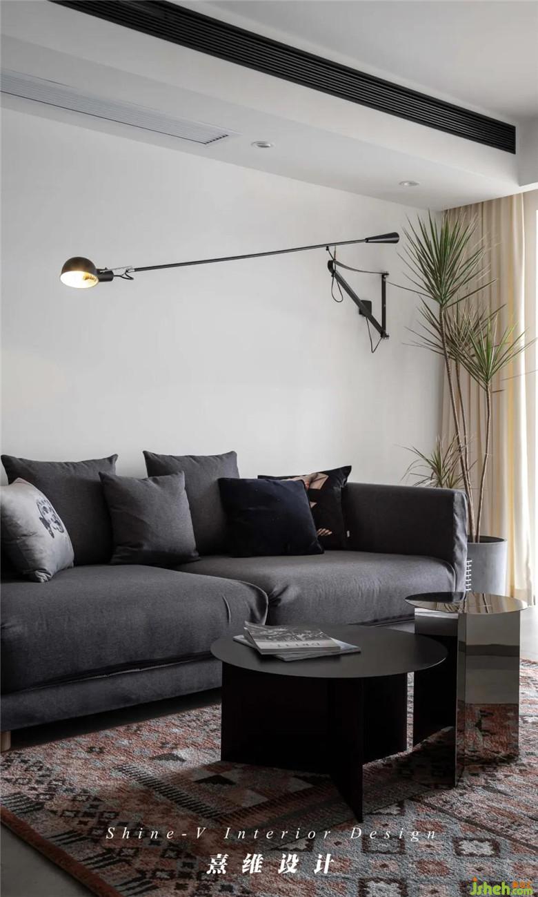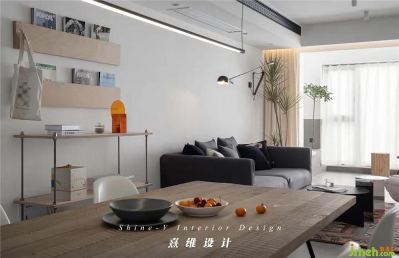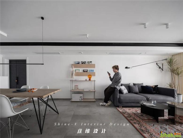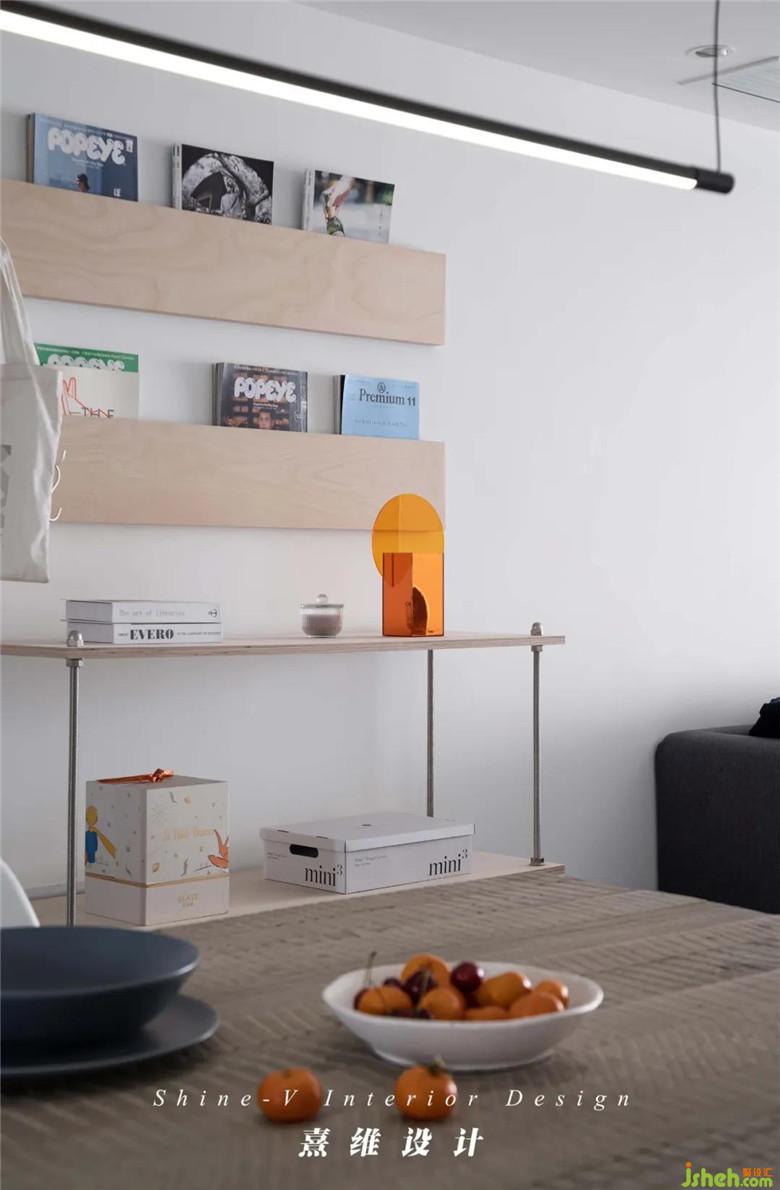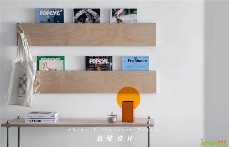 ▲钢木结构置物层架最大程度露出这个家中白的底色,保持了空间结构的自由感,不增添丝毫沉重。与墙面贴合的杂志架,温柔原木色从置物架层板沿袭过去,功能性不是它的目的,装修公司让白墙不被冗余的功能附着,为空间带来呼吸可闻的轻盈感受。