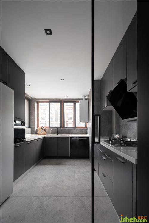▲纳入阳台后,厨房中电器高柜、地柜、吊柜都各得其所,操作范围宽绰,收纳空间充裕,窗户不被遮挡分毫,良好的采光与开阔感在厨房也可尽现。