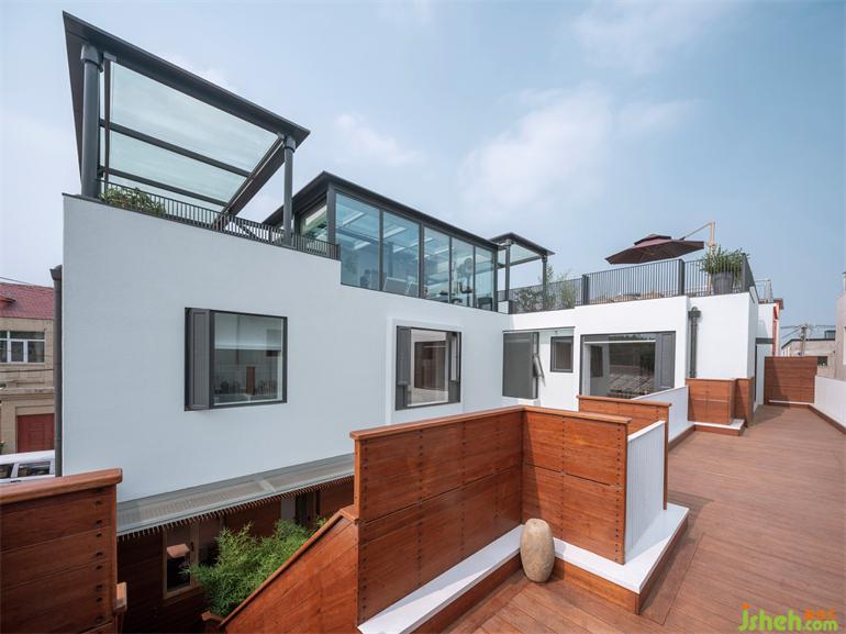 北京的天空有时候是灰蒙蒙的,大面积的白色墙面把底色净化出来。别墅装饰庭院里种植大量竹子表意东方,营造出区别于村镇所在的另一个自然,像是北京对江南。无论阳光、雨水还是声响都没有被隔在外部,远道而来的南方芭蕉和北方植物一起分享花房,新旧、内外、南北、城乡在进退皆有余地的表达下消融了边界。