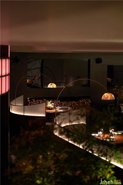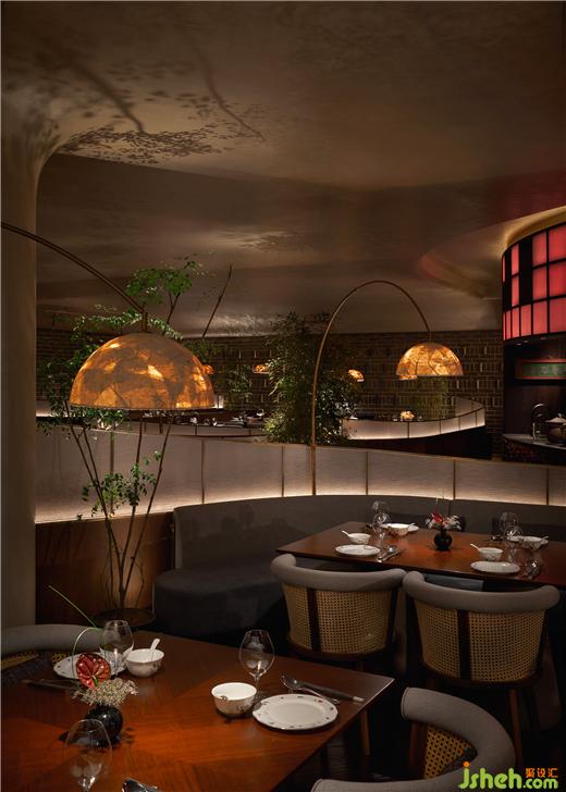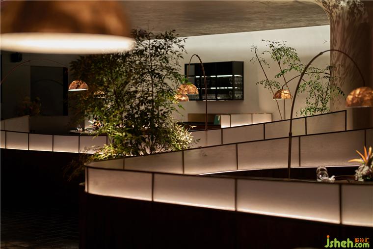 灯笼的尺度和材质经过反复调试,以获得最佳透光效果,与之相匹配的,室内灯光无限贴近自然,使天光、月光、烛光等等光的感知合一,形成感知上远大于室内的自然观想。山野植物挺修丰茂,恰到好处地自在生长。南麓·荟馆设计无论是竹、纸、木头、金砖亦或者艺术漆面,丰富而频频变化的质感折射出大量情绪颗粒,它们混合着光线不断穿透、投影、游走,搅动起勃勃生机。