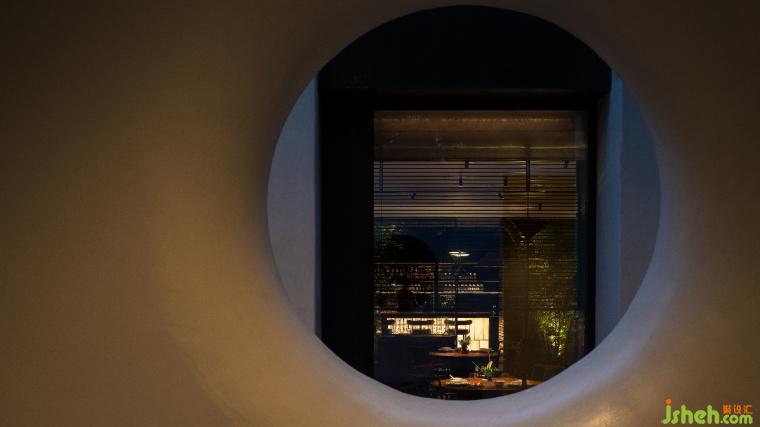 初次环游,建筑掩在园区树影后,近入口时视觉能够透过影壁上的圆形开孔穿透立面直达内部。视觉的远端镜面反射其间光影,人穿行其间层叠浮动,圆滑的孔洞如现实和虚幻空间的偶然重叠,象外有象、引人入胜。
