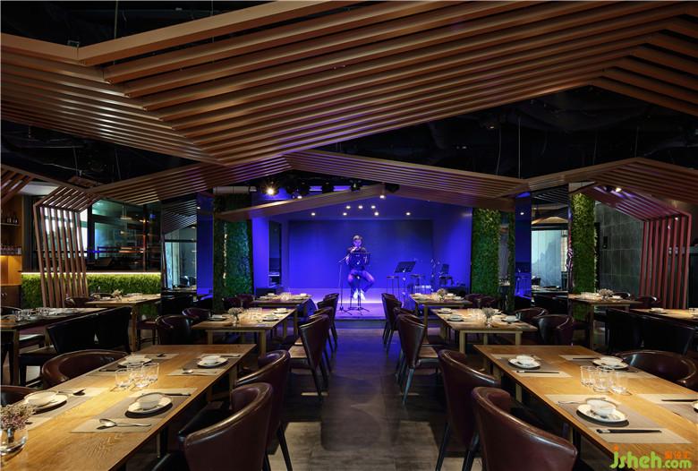 本项目的主要设计灵感来源于音乐中的五线谱,由于是音乐主题餐厅,所以根据整个空间布局,在餐厅的中心位置以五线谱为元素,做了三个造型隔断作为整个餐厅的主亮点,以线条的方式将整个大厅空间拉伸,并以金色不锈钢材质凸显整个餐厅的就餐档次,给人一个全新的感官体验。