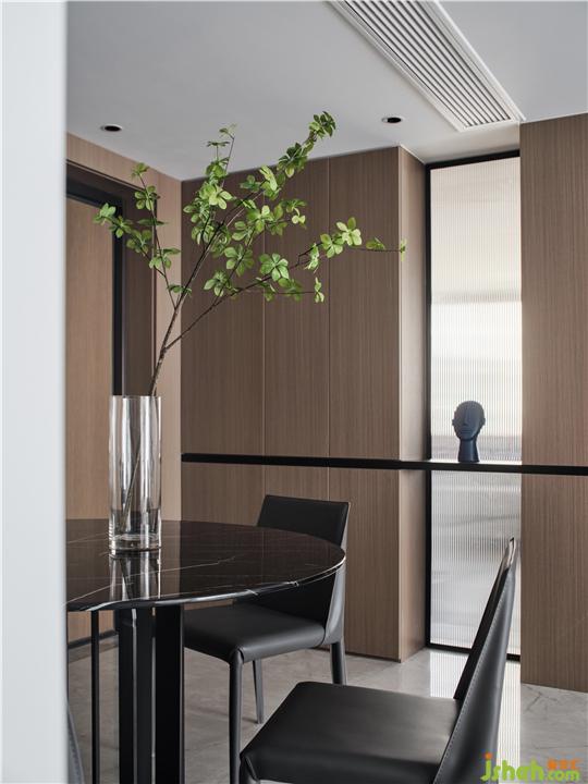 本案两开间朝南,客厅东西朝向,原有空间布局做了重新调整。扬州家居设计将入口处厨房门方向调至东侧进入,增加进门鞋柜的收纳,并通过长虹玻璃为餐厅引进自然光。原主卧室衣帽间改为敞开式书房,利用客厅悬空柜设计,提高整个空间的收纳,同时将书房采光引进客厅和走道,让整个客厅视线达到延伸和穿透效果。主卧衣帽间变为书房后,取消原儿子房卫生间的空间,并改变门的方向,为主卧室重新划分衣帽间区域,平衡之后的功能与连贯的动线,让卧室空间更加自然流畅。