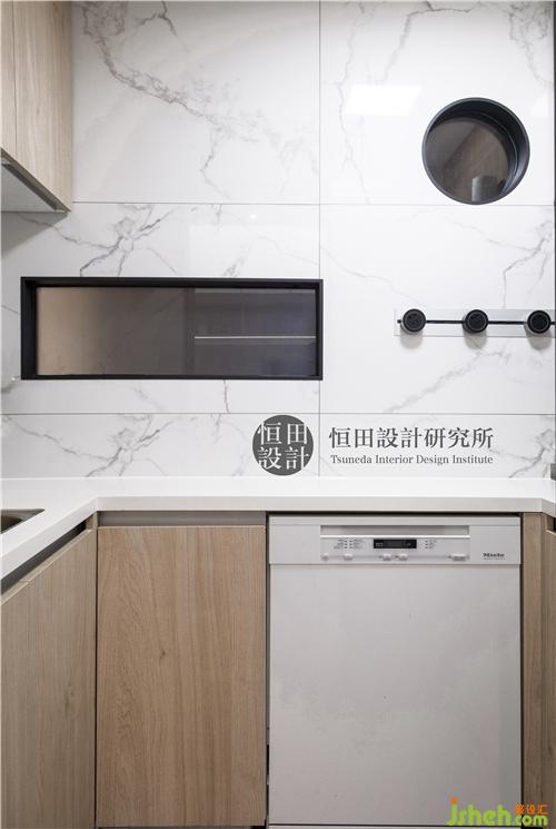 原来是因为厨房家电占地太大,从书房借了一小块空间来补充。你能想象这个矮柜下藏着洗碗机么?