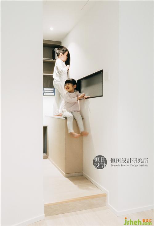 设计师巧妙地借用了利用率不高的过道,以及空间的高低差,将五个房间、中西厨、客餐厅、三分离卫生间、家政区和儿童玩耍区,以近乎魔术的手法塞到了同一个空间之中,功能扩容率超过100%。