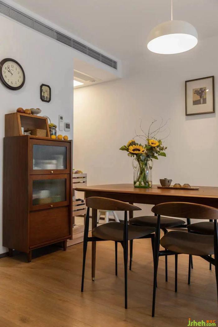 屋主希望餐厅区域能有一个储物柜收纳一些杯子茶具,咖啡壶等物品,室内设计师在这个空间我们没有再做定制,而是采用了小巧的成品柜。