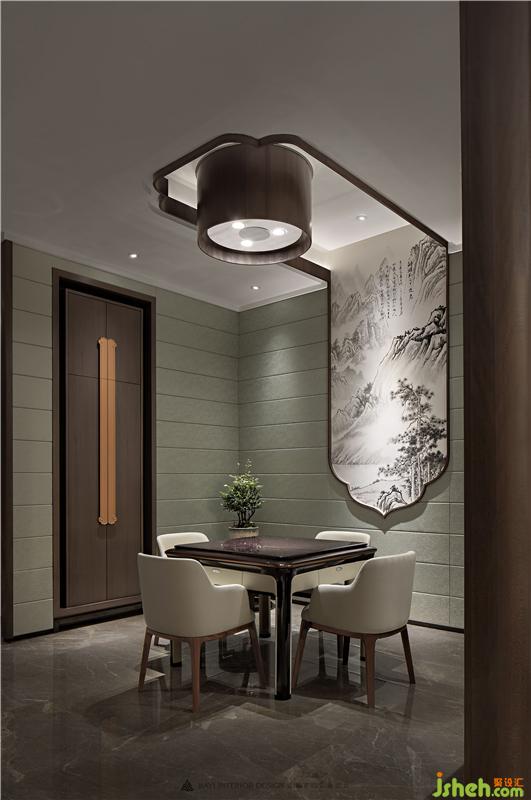 棋牌只是物趣,终究渴求的是超然物外的生活态度,悦一方天地闲适之真性情。借景东方,玩物适情,以轻逸自然的艺术手笔再生妙趣,有古风而不迂腐,有新韵而不轻浮。山水画自天穹徐徐落下,犹如凌空展开一幅奇美画卷,欢愉之间,将儒雅之士闲心享春秋的情致推到极致。