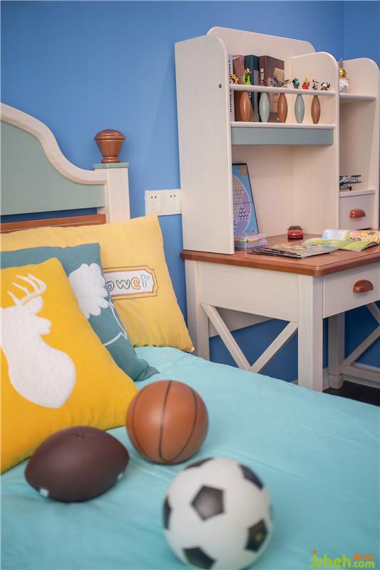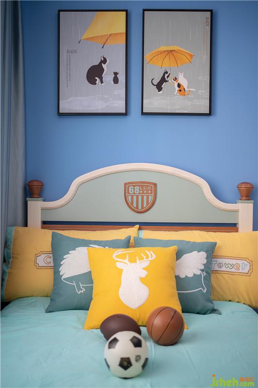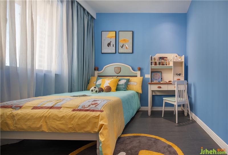 蓝色,与纯洁无比的童心最是相衬。室内设计师以此为空间基调,蓝白呼应,干脆利落,正是现代白领父母对体面舒适的极致追求。加之暖黄色的床品、童画多处点缀,设计之余更显活力,创造出宝贝专属的成长空间。