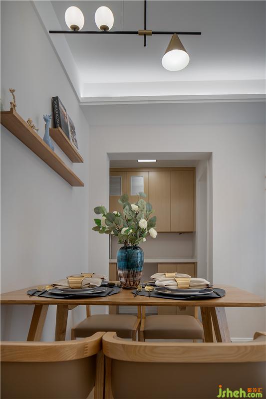 简约的餐厅搭配,在和馨的光影下温暖喜人,原木色餐椅清新怡人,给灰白墙增添一排窗格摆上小小的饰品既冲淡了单调感,又有了艺术范,两个人的安乐窝不用那么复杂。生活,就需要这样的小确幸!