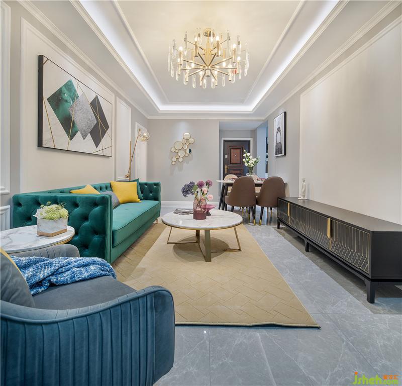 整体样板房设计优雅精致,细节之处皆是生动的表情。墨绿的沙发和色彩婀娜的几何画饰为洁净的空间增添了不少情趣;线条简洁且雅致的地柜,不仅提升视觉的舒适度,更给生活积累了一点厚度;玲珑剔透的铜水晶灯个性十足且精致,光影之间营造生活的节奏。整体搭配越看越耐看,有层次的设样板房计总能在简单中体现高级与低调的奢华,为空间的细节增添独有的气质。扎根于为己悦的思考,空间将无处不充溢着生命。
