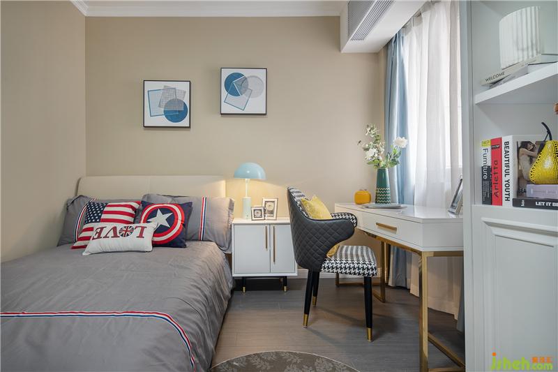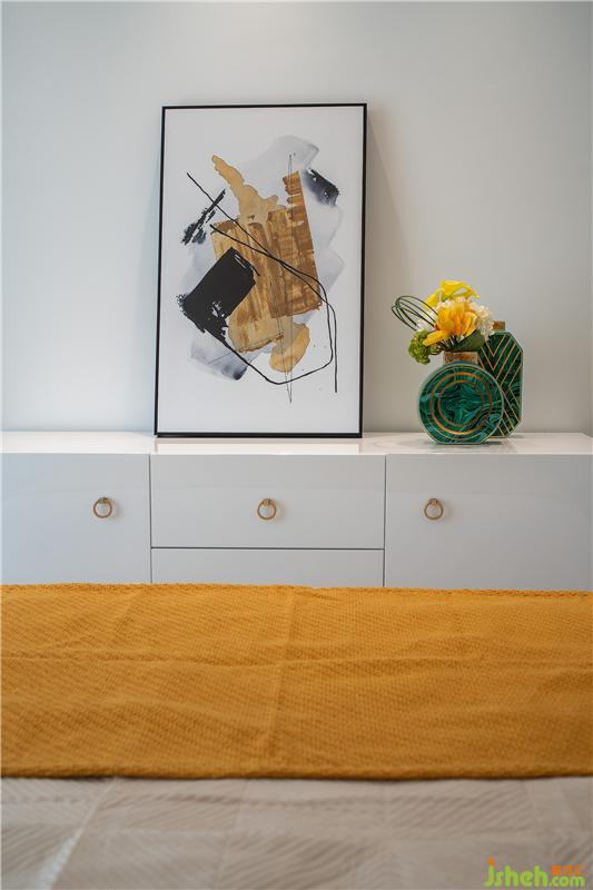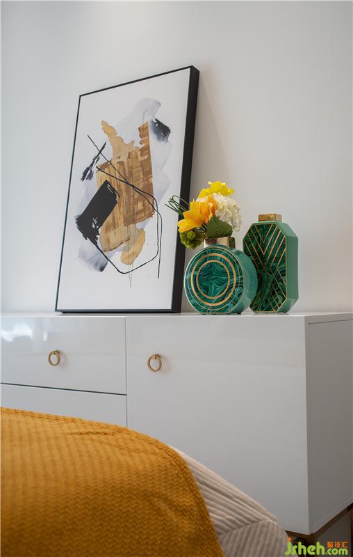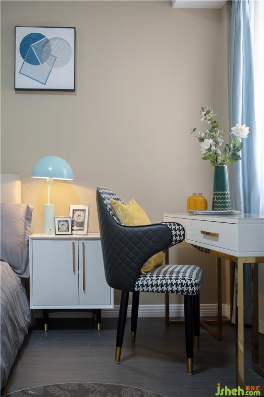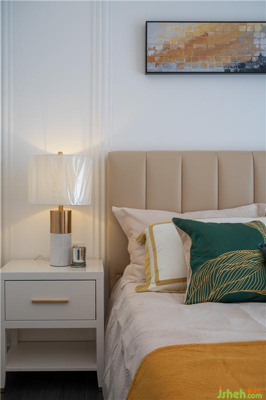 卧室布置浅色棉麻织物和乳白色系家具来制造舒适平和的观感,灯饰与饰物搭配更显简洁轻致,整体呈现出一种舒适自然、安恬静默的休憩氛围,好似清泉流水,缓缓而歌,待亥子时刻,夜深人入定,山河梦间。