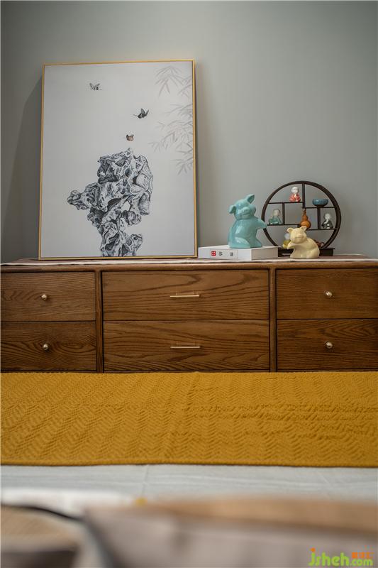 文人用“品”,以雅为准。东方韵味家具、素描山水挂画、中式花艺,结合局部金属材质的生活器物,彰显着居者生活的雅致,传递着居者对中华文化的热爱,还有对于高雅品性的孺慕…所见之处,皆挥发出各自的物性,烘托出诗意生活情调。