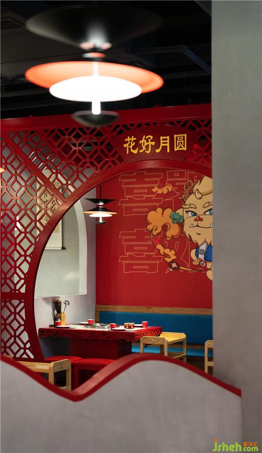 成都喜饕餐厅设计沿用了中国传统神兽饕餮,所谓饕餮现身,瑞兽出世,神兽庇佑,福运缤至,又将中国传统喜文化融入其中,因美好团聚,享吉祥美意,这就是喜饕的意义。