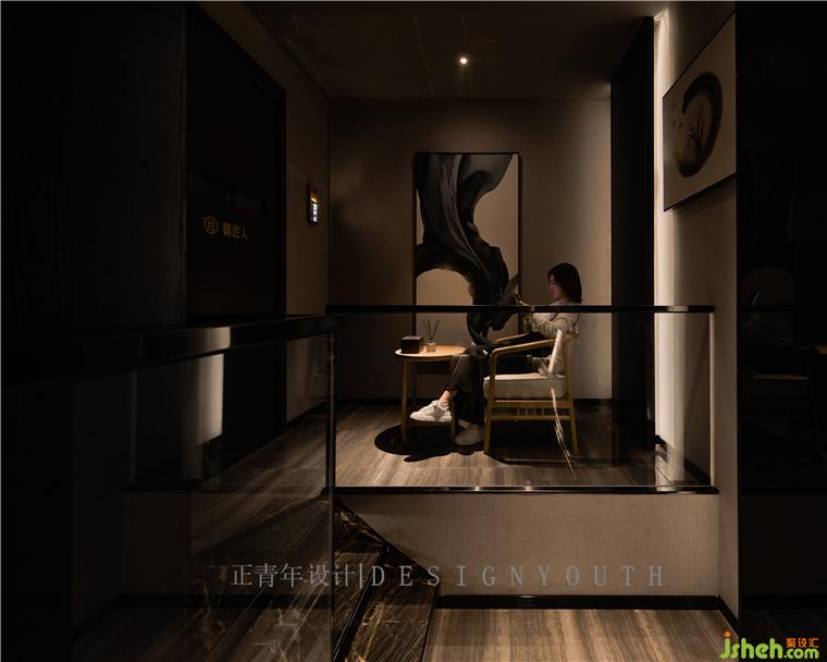 蜀匠人足道装修设计以黑色勾勒出客人内敛却高贵的品性,同时辅以黄色灯光强化似家温馨的浓郁氛围感,两者结合下,使空间保持一定神秘感与通透感同时平添些许韵律节奏。