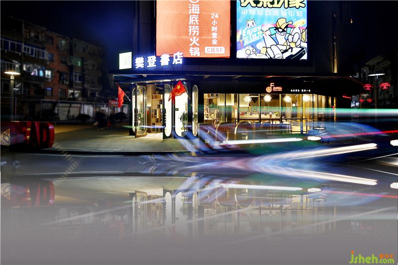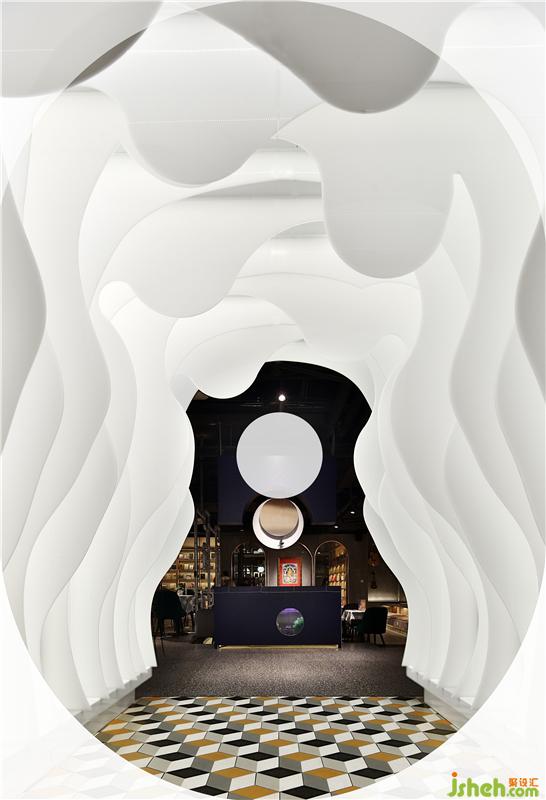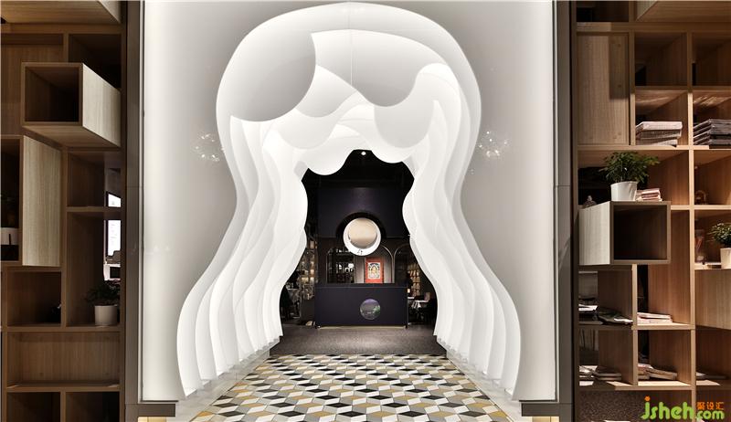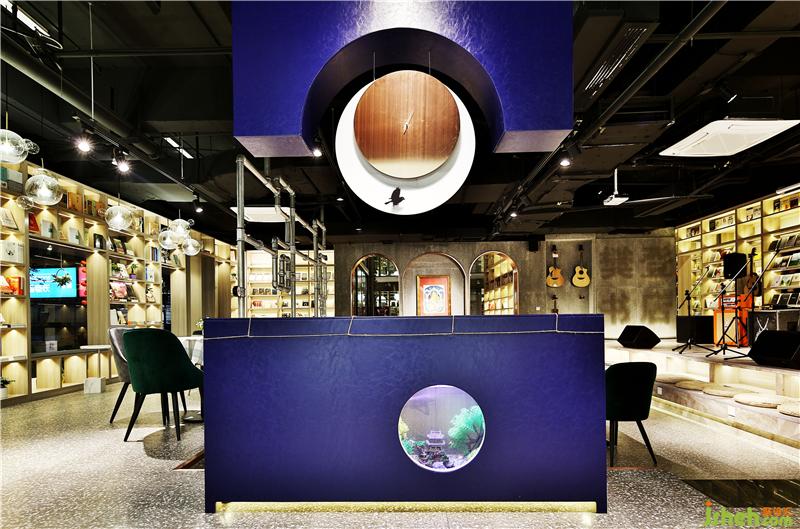 江西首家樊登书店、音乐综合体在南昌盈石广场惊艳亮相。书店经营面积600平方米,目前陈列图书2.5万册,集展演活动、咖啡品鉴、音乐教育、文创商品、图书音像经营板块为一体的体验式情景书局,书店空间设计上明亮、开阔,氛围营造上优雅、温馨,充满人文艺术气质的氛围。进门结合音乐元素,将12把不同的吉他为元素演化的时光隧道,进门穿透的正对书籍也是引用古代装帧书籍概念做成水吧操作暗柜,上面采用吉他空心圆形的概念做成动态时光装置。