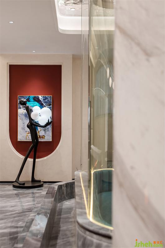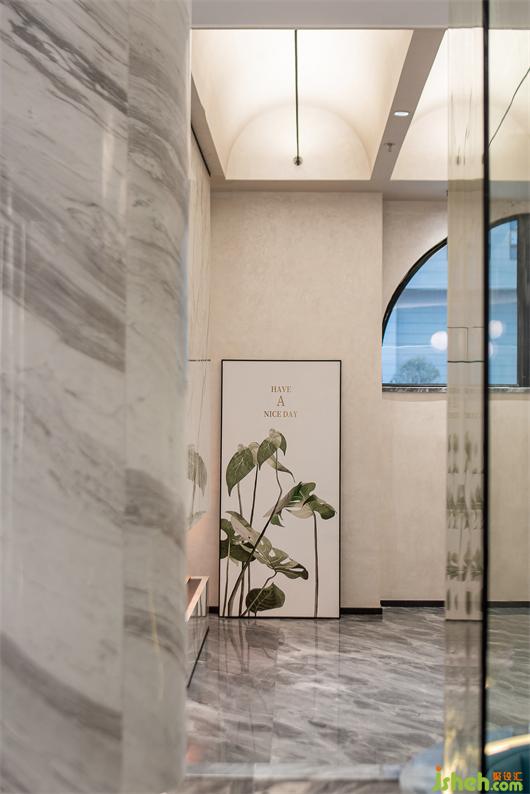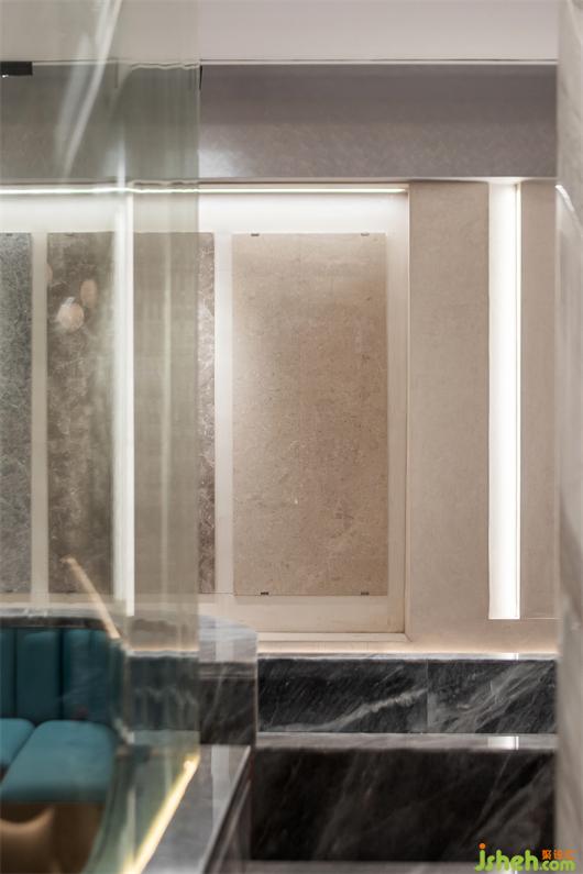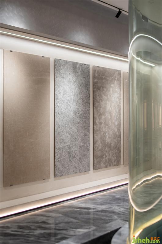 体验中心设计墙面的斑驳质感延续了空间的天然雕饰的原始之美,虚实之间呈现出一种极致简约的美感。与产品相仿的光源色,铺就出舒缓治愈的空间基底,置身于其中的访客,与空间达成共情,产生连续、动态的空间体验。