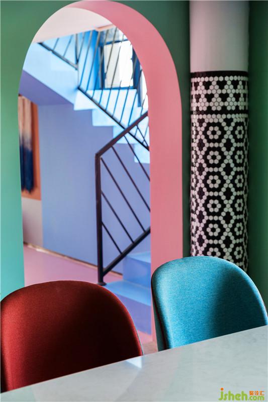 · 本案的业主是一位热爱生活、喜欢旅行的建筑师,他希望把旅途中的美好和喜欢的建筑都凝聚在这个Homeparty 的产品里,轰趴馆的设计灵感也正来源于此。作为该系列产品的第一站我们选择了 |土耳其——一个浪漫、充满想象力的国度作为设计主题。而色彩丰富、个性活跃且时尚的「孟菲斯风格」成为了设计的首选。