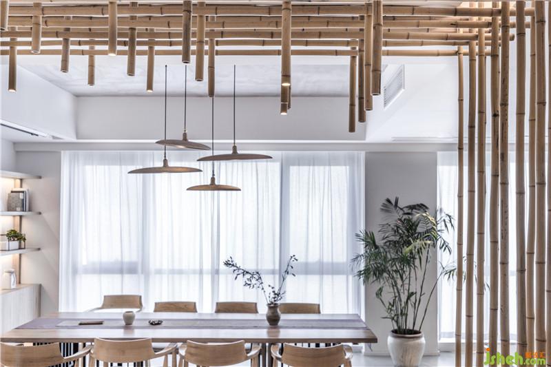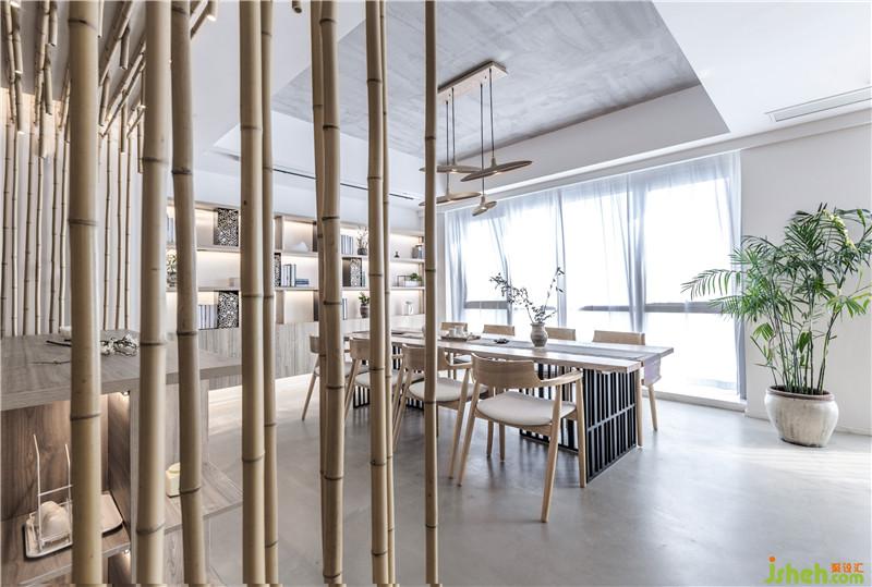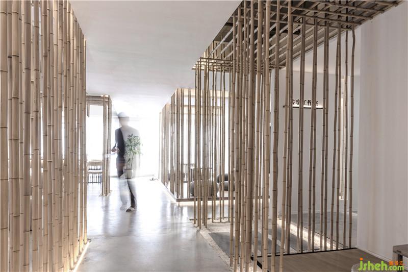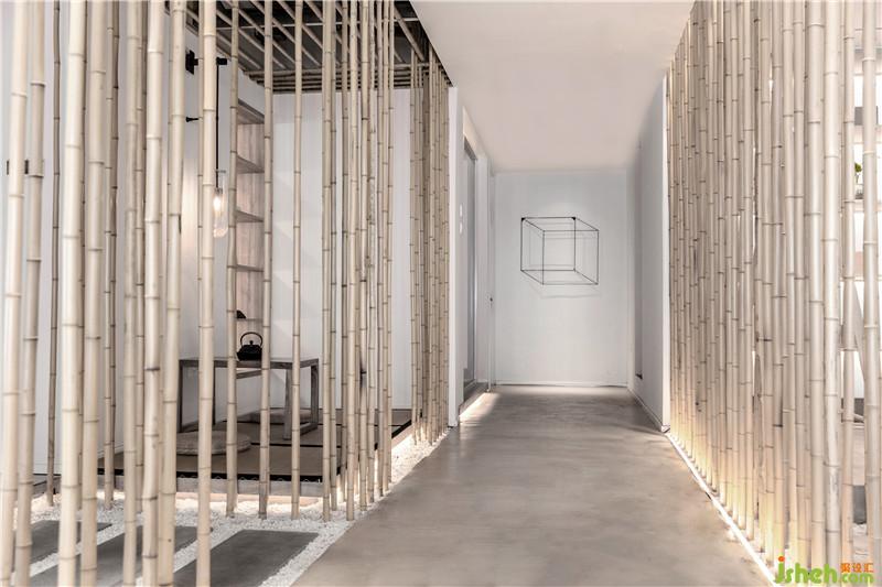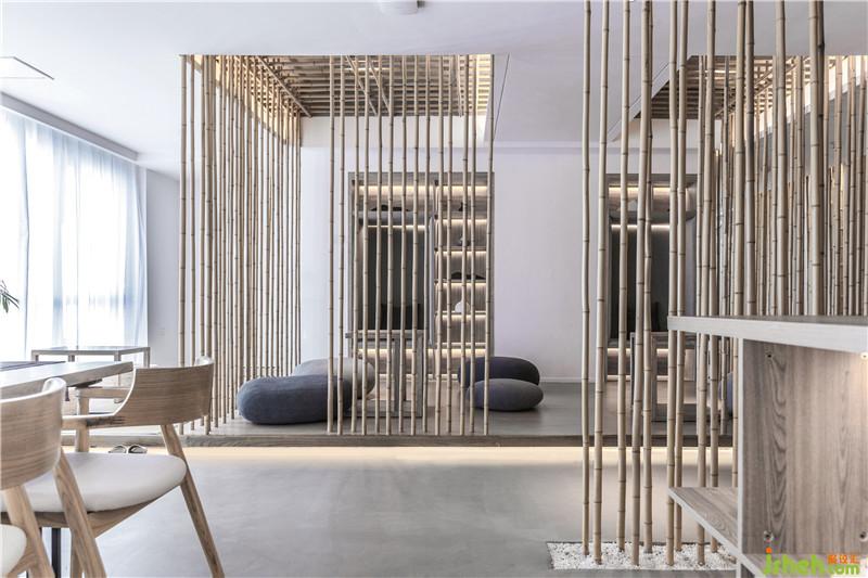 · 步入空间的一瞬间,忽见一片竹林,嘈杂被退却了,换而一种安静。拾阶而上,空间变得豁然开朗。设计师以竹为题,通过竹林的构建手法使之融入室内,希望以物质空间为载体,展现空间功能的思想性。为都市丛林的名利欲望、人的自我迷失焦虑找到心灵的寄托。