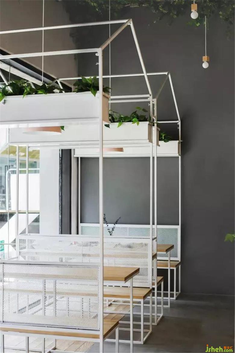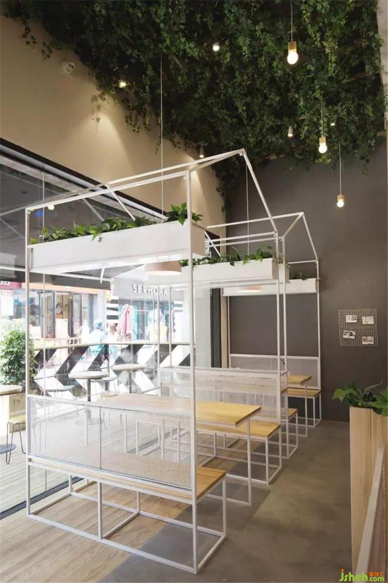 这是餐厅靠近入口处的一角,它由极具特色的铁艺小房子结构组成,自成一体。天花上的绿植吊顶,就像朱丽叶故居中墙上的常春藤,是它们的存在见证了那对恋人。