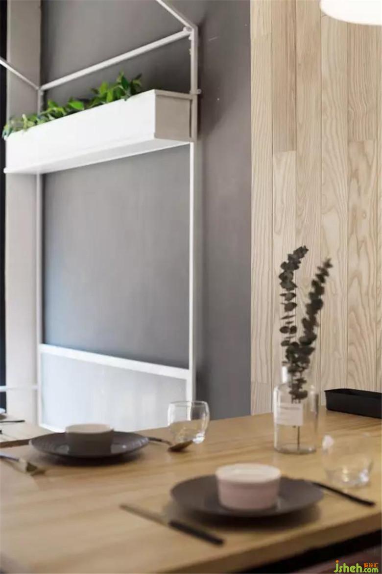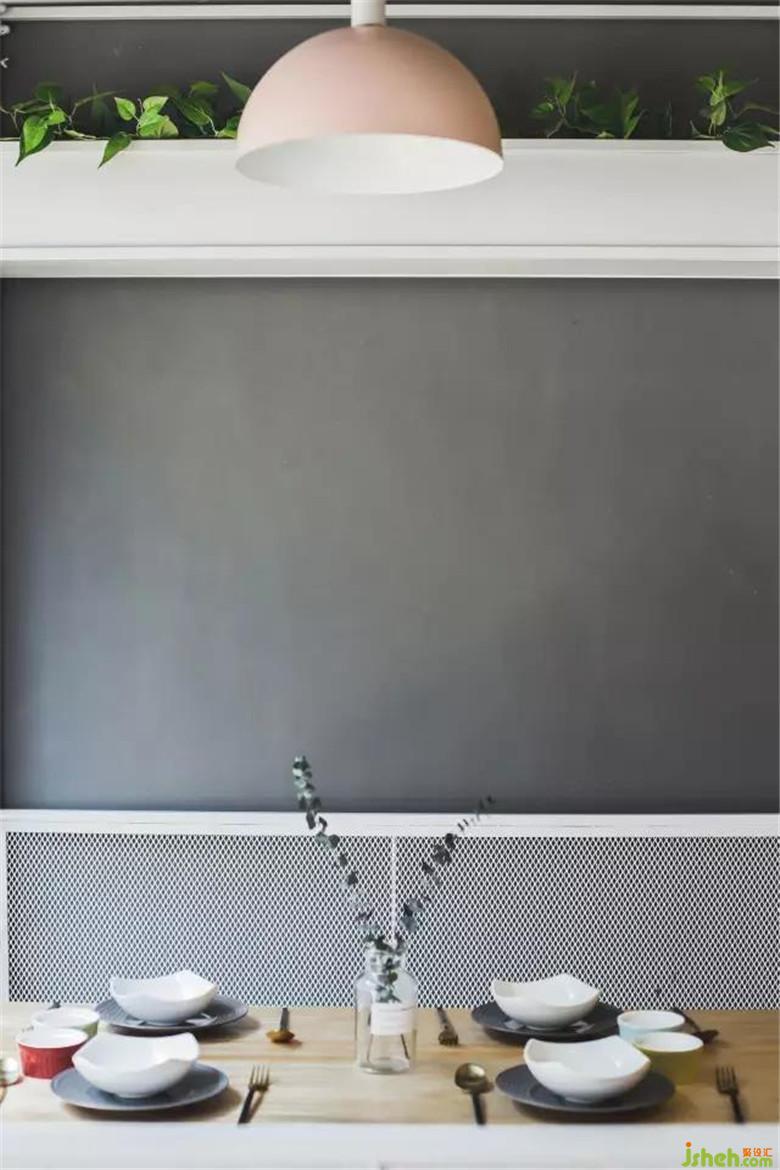 悬挂着的暖光小灯泡适当地增添了空间的通透性,也为这一角增添一份浪漫。餐厅设计