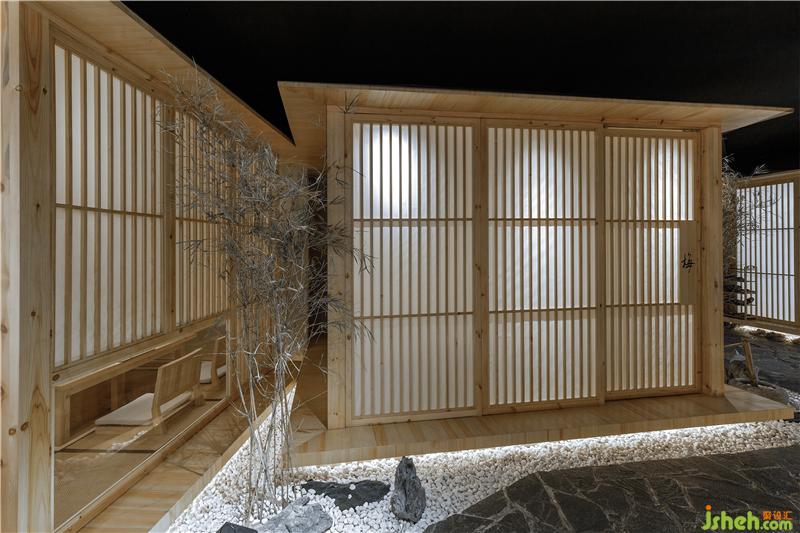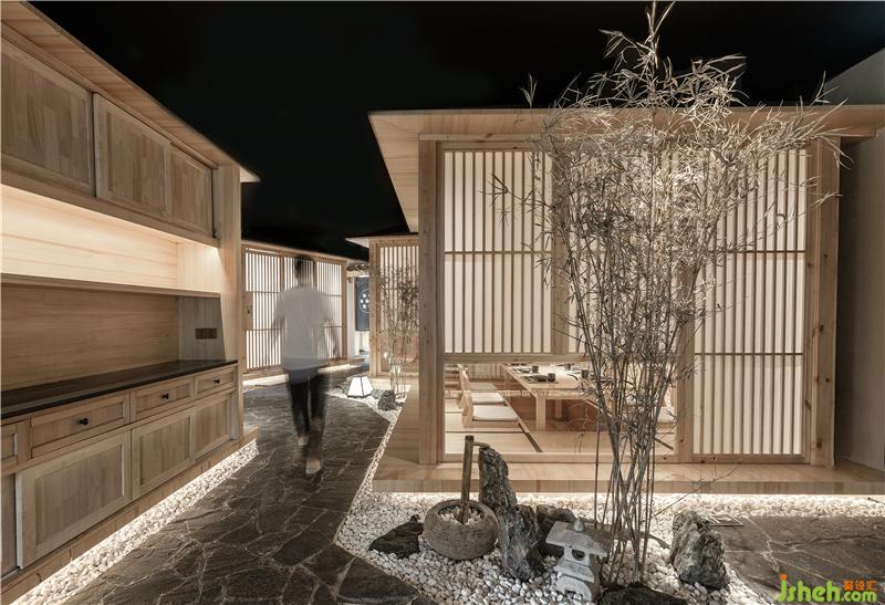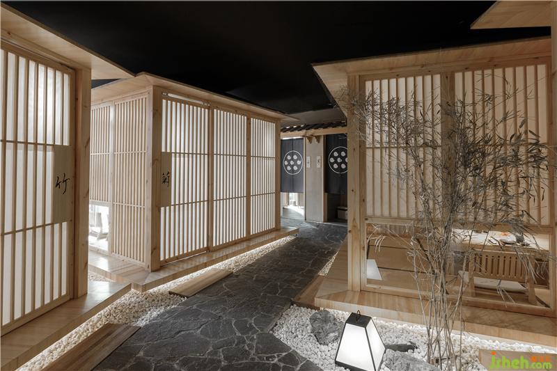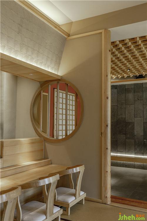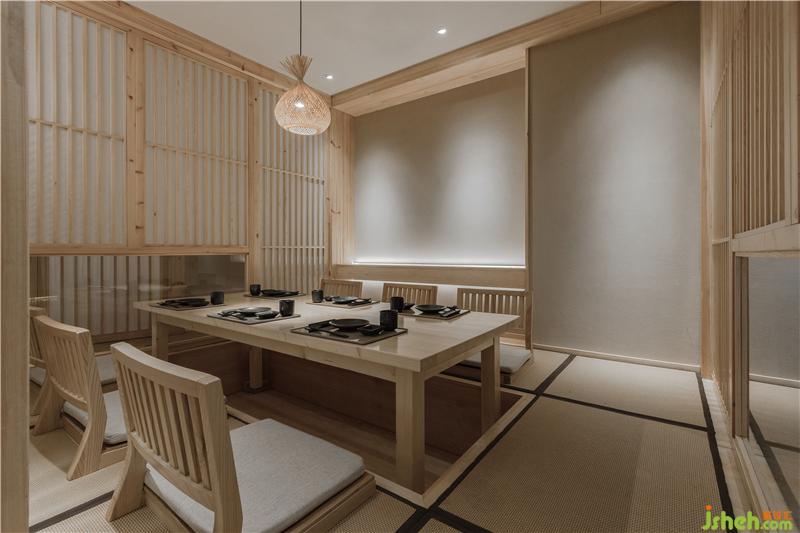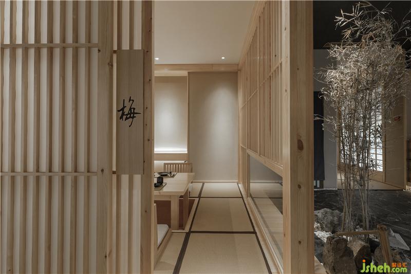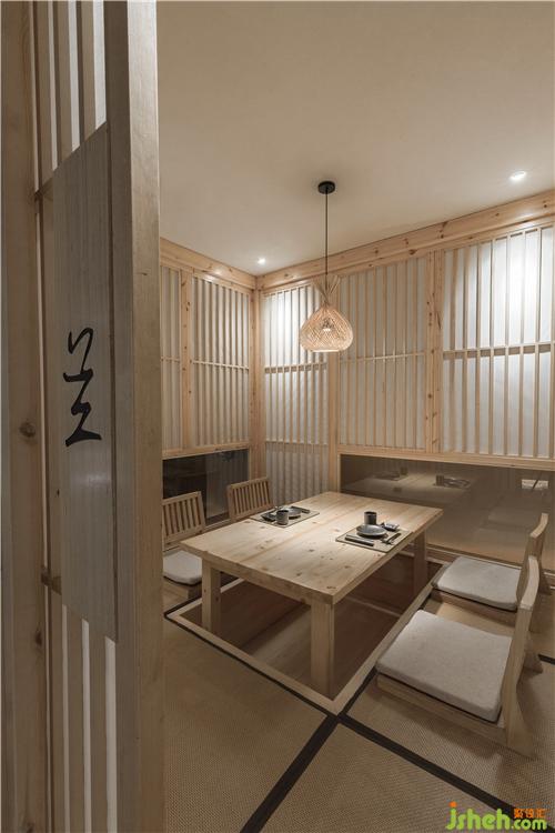 在二楼,留出了一大半区域,以包厢形式来提升消费档次和就餐的隐秘性。包厢采用传统的日式和室结构,全由木结构构筑而成。