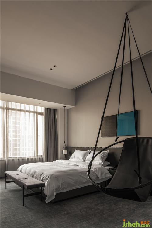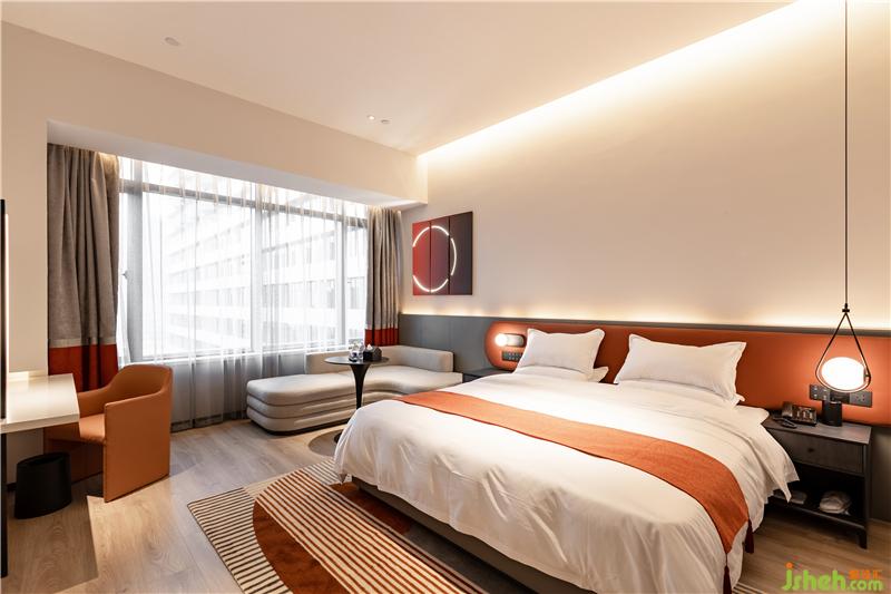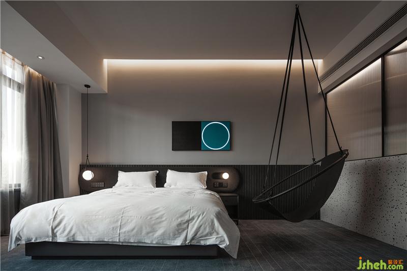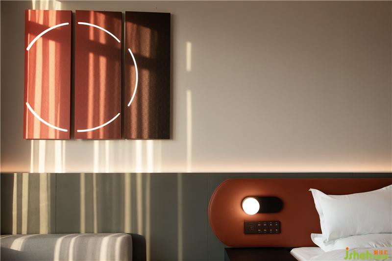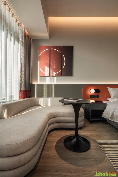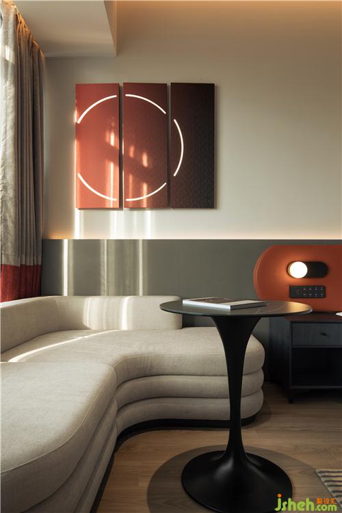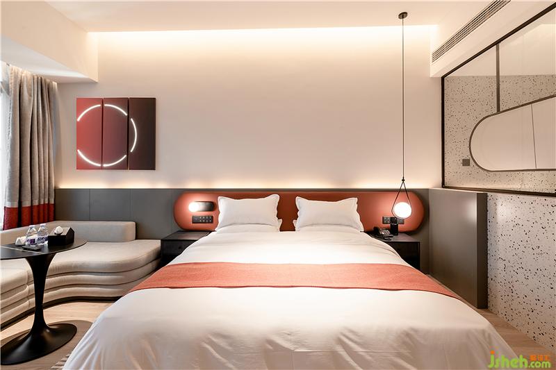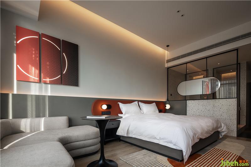 南昌酒店设计室内以纯粹的白色碰撞上浓烈的红色的或灰度的绿色,