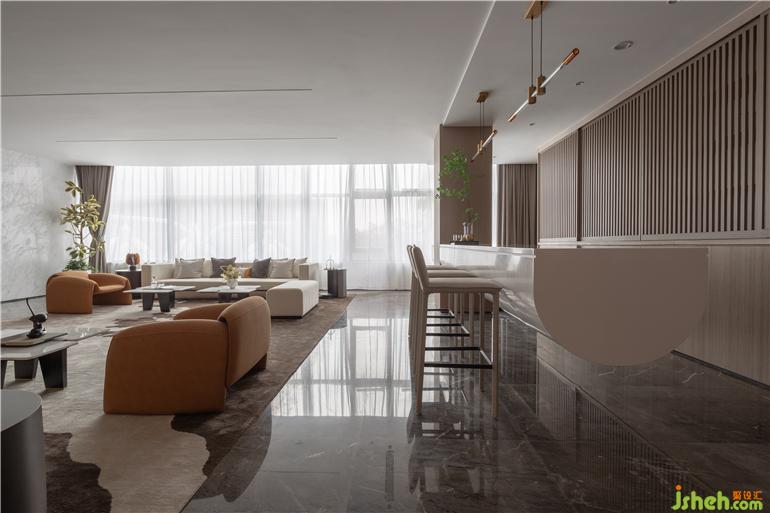 设计师参考五星级酒店行政层的设计理念,用动静相宜的手法将空间划分成五大空间,相较于传统的会所空间,本案的室内设计更为简洁,动线更加流畅。