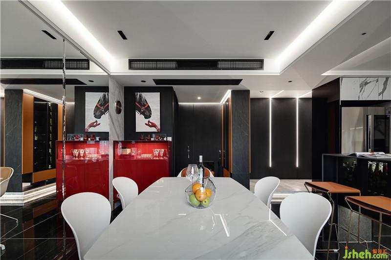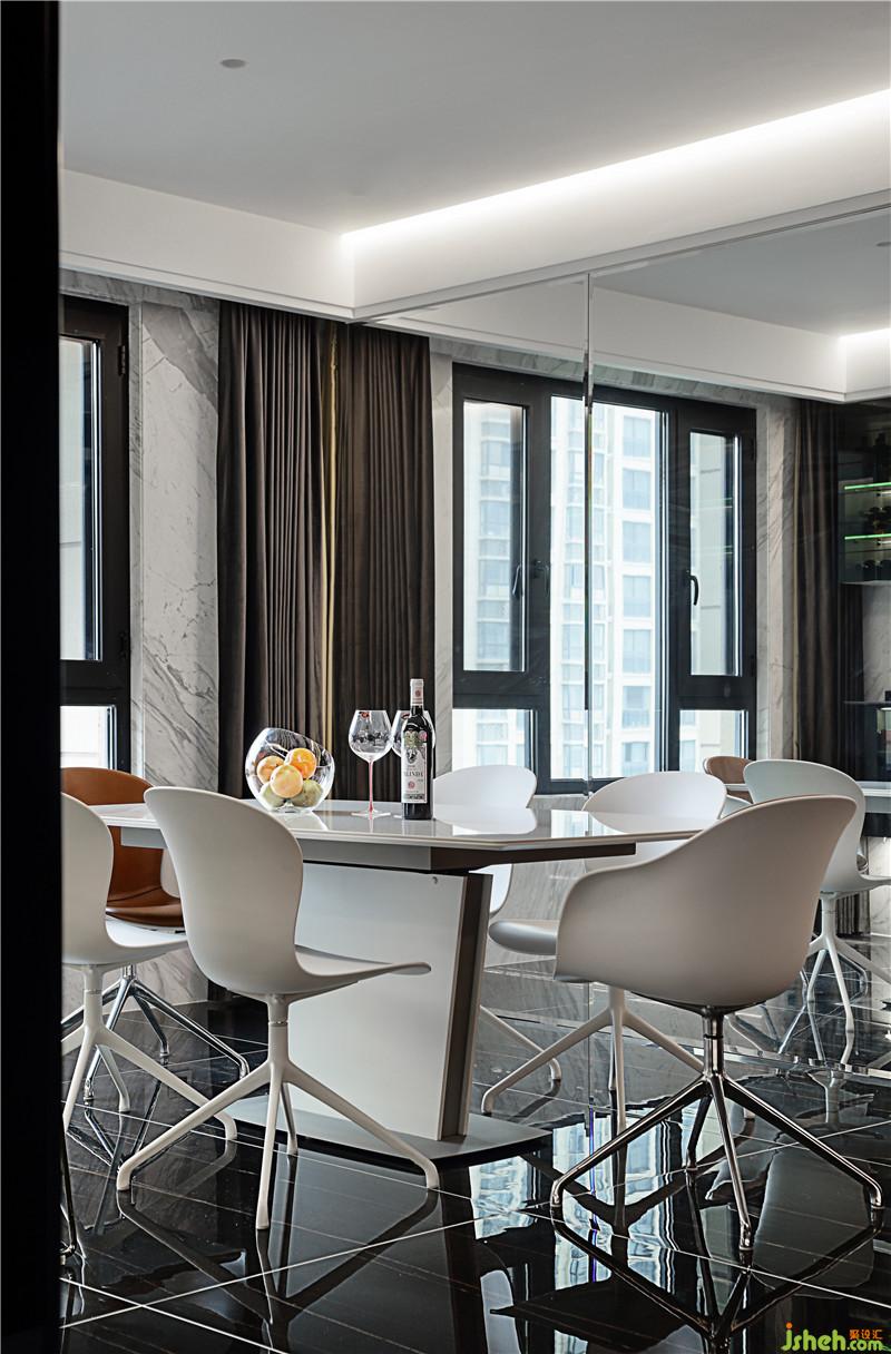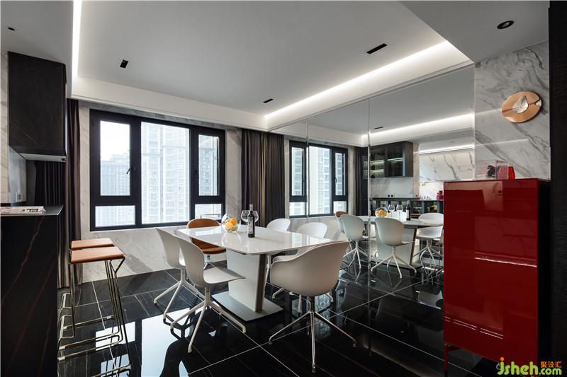 餐厅墙面镜面的使用让空间的视觉效果翻倍,在这样的空间吃饭,人的心情都会豁然开朗。