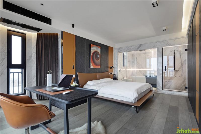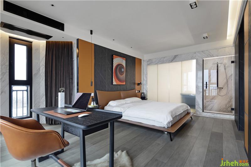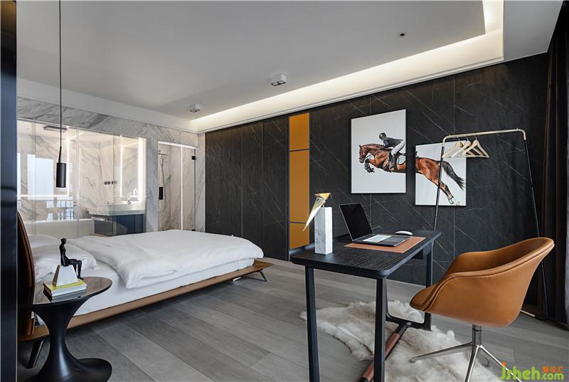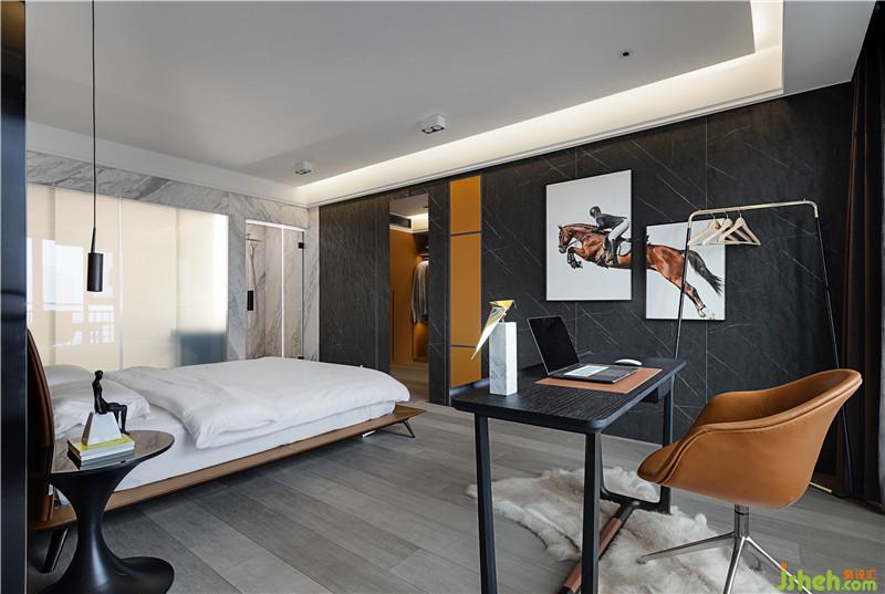 “马”的元素不止一次地出现,因为马给我积极向上的态度,激励着我不畏艰险,奋勇向前。墙面上的橙色柜门板也起到了装饰点缀和呼应床背景中心的作用。