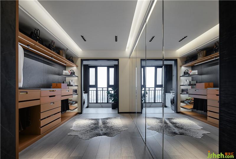 空调出风口也是刻意定制的黑色,和整个硬装基调非常协调,增加了细节。衣帽间同样也是采用隐形门的设计。