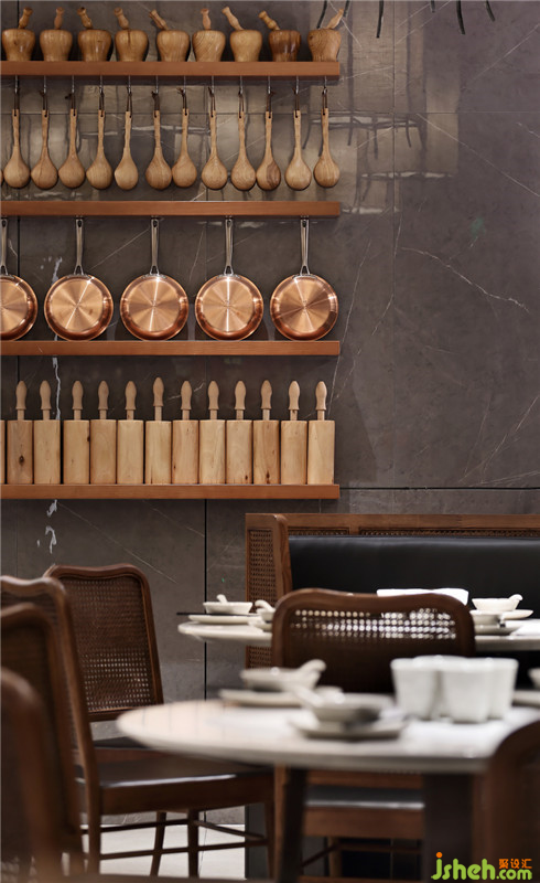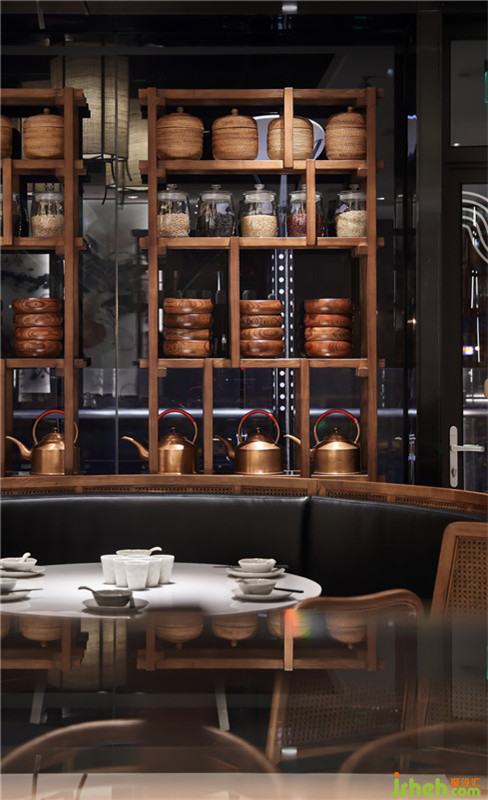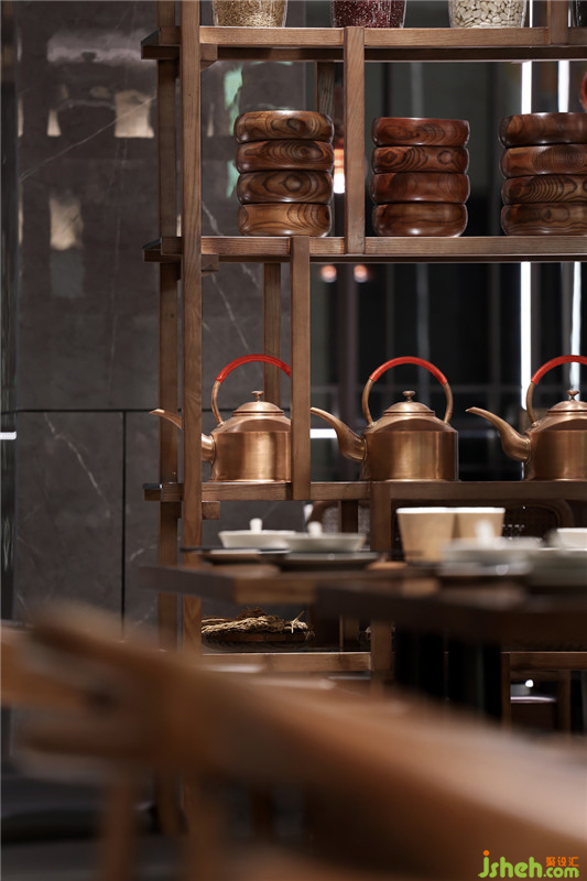油盐酱醋茶,锅碗瓢盆浮世过。对寻常百姓来说,食饱饮足,可比风花雪月更抚慰人心。设计师摈弃过多刻意的装饰,铜壶,瓦锅,木碗,藤篓,静雅登场,沉稳中不乏生趣,静默一首动人的俗世烟火诗。