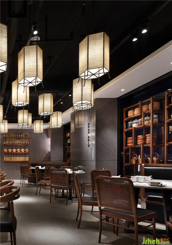 灯光的营造极力还原旧时的家常温度。光影自然洒落在桌椅器物,折射出岁月的纹路。一盏吉祥葫芦灯,八方玲珑素锦灯,传统与现代审美交融,时间的流逝变得绵长而丰满。一日三餐,四季百味,渐渐沉淀。