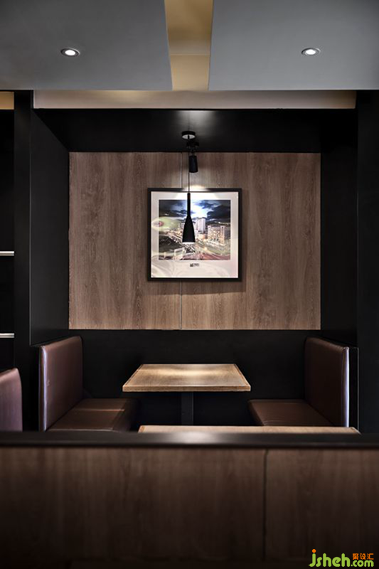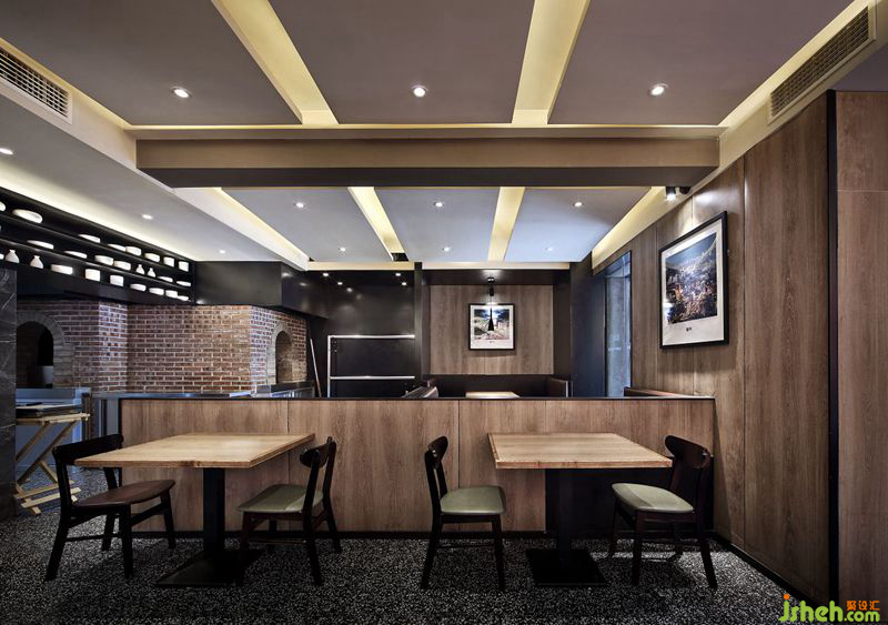 主要用材:木饰面,水磨石,钢板,灰镜,木纹砖