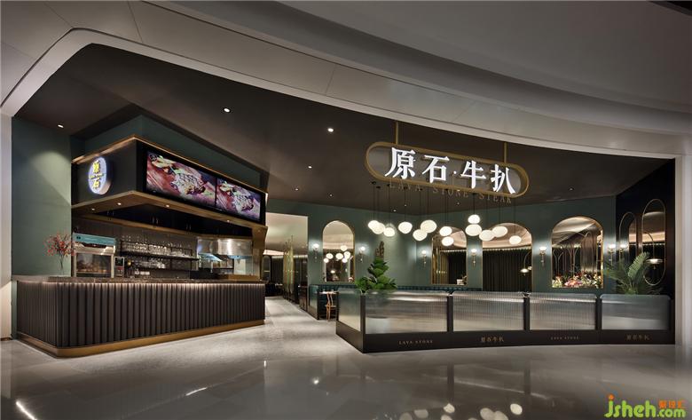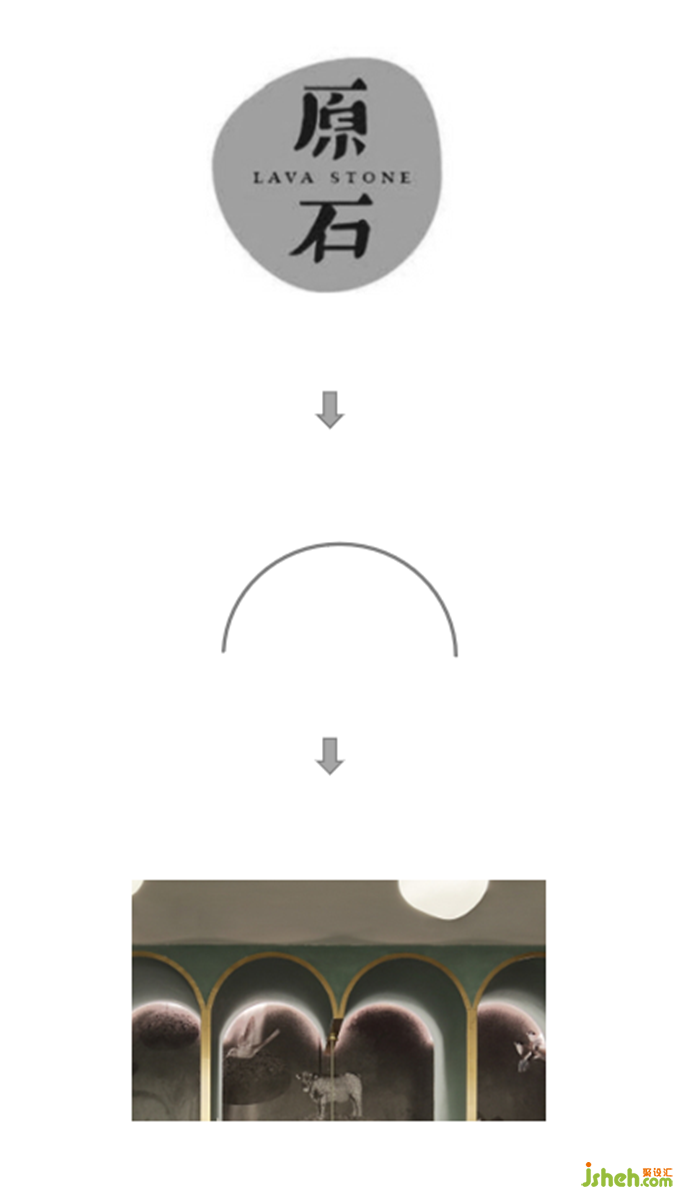 本着追寻牛扒真滋味,赋予西餐浪漫情怀的美好期许,艺鼎设计师梳理了「原石牛扒」品牌文化,以欧式建筑+原石logo为灵感来源设,拆分出拱形+弧形曲面等设计元素。