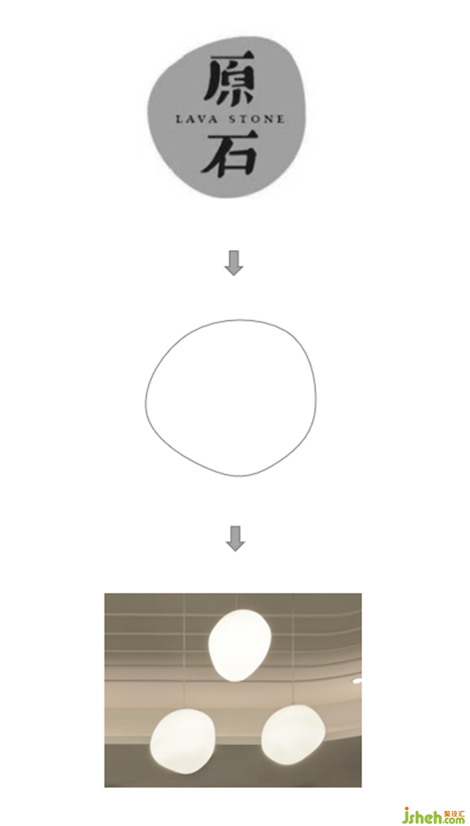 原石的品牌文化融入空间也很巧妙,天花上的线条衍生自原石品牌图形;