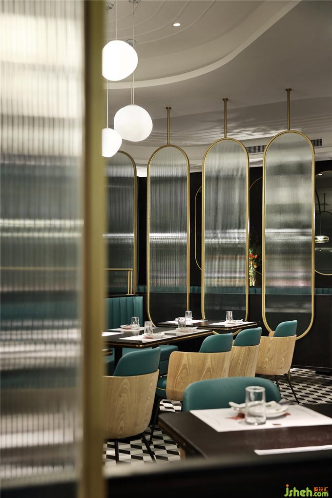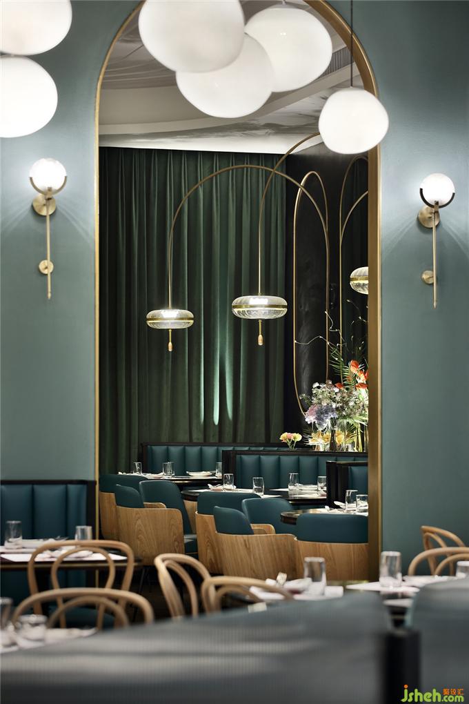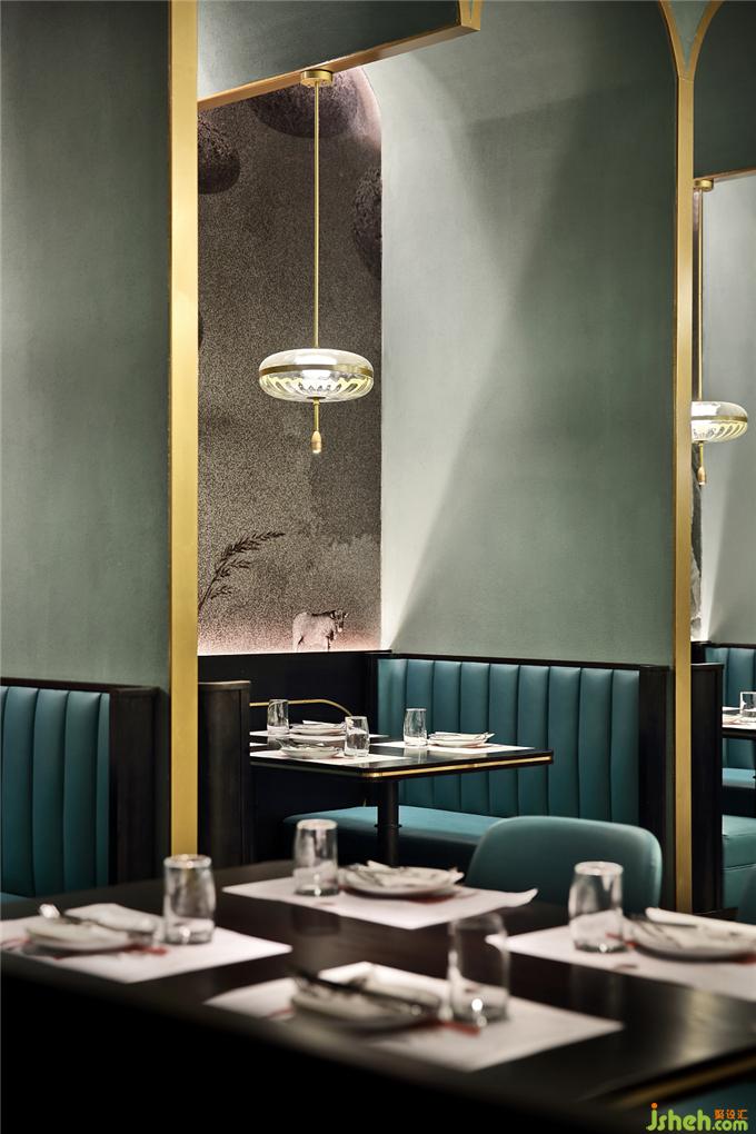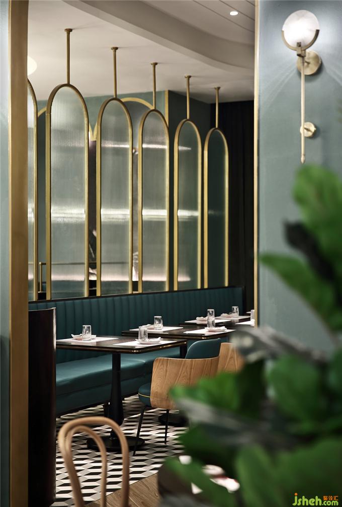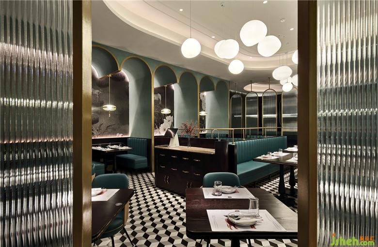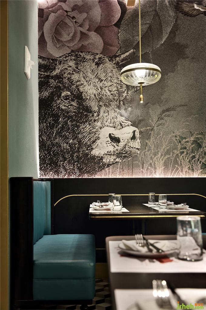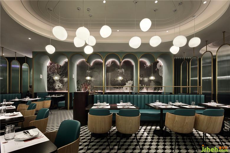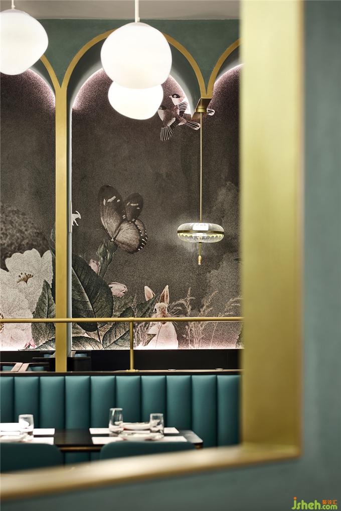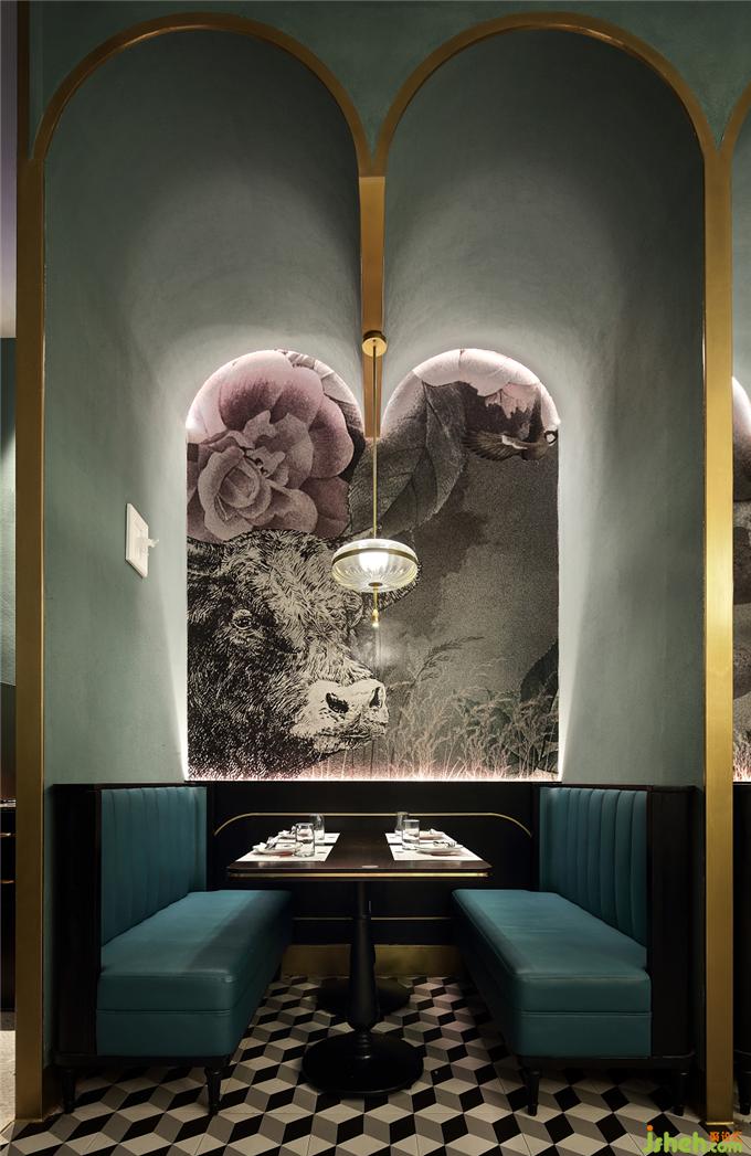 大幅插画藏入一个个圆拱中,即是整体,又独立成画,一种唯美和谐的曼妙意境夺‘框’而出。餐厅设计