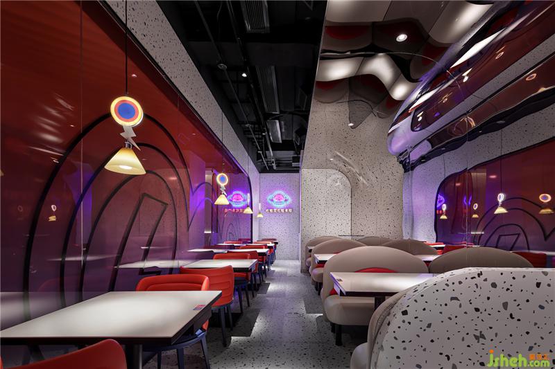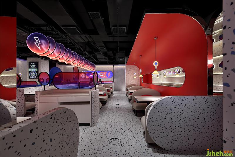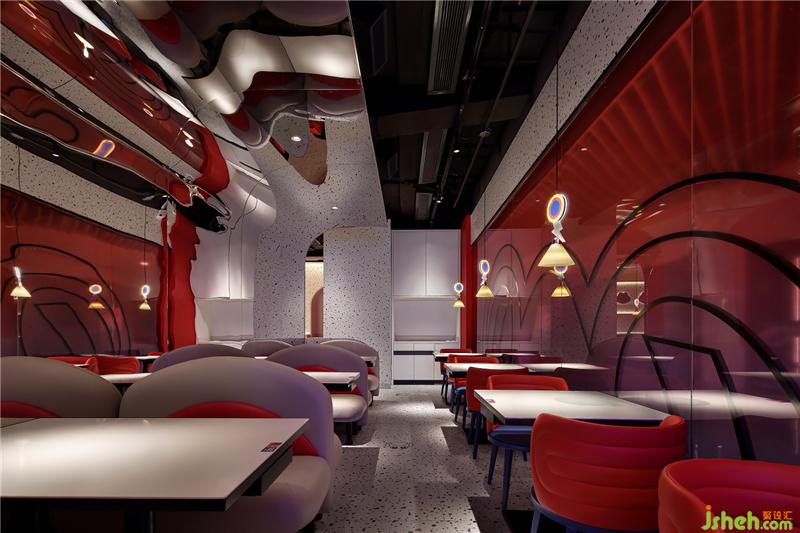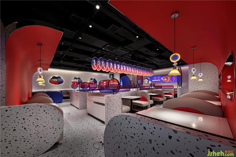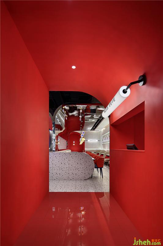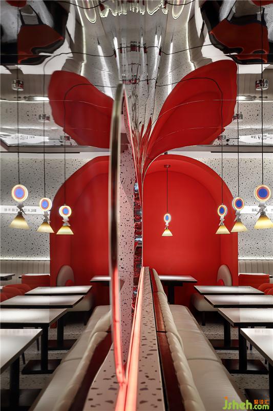 情绪在这个空间中得到满足,即使深陷泥潭,狭窄的空间通过镜面材质反射着渐变的玻璃材质,斑斓的色彩映衬两种情绪的焦灼。幽暗的空间适合交流到彼此的内心深处。