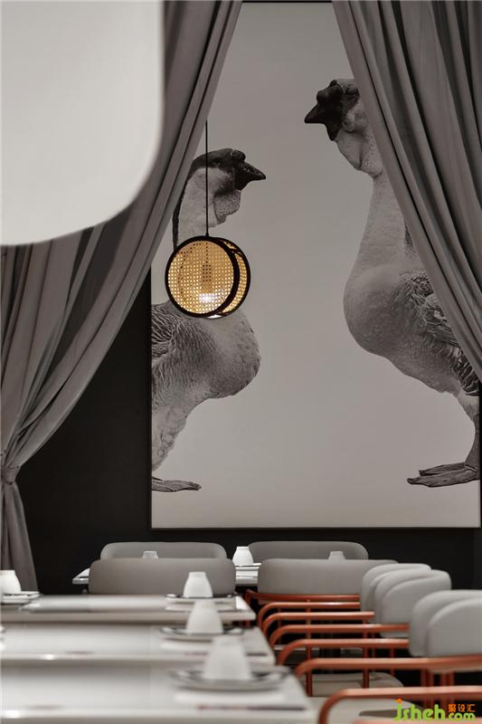 本案餐厅设计围绕潮与潮展开,“潮”既表达一种反思型怀旧情绪,也叙述一类引领潮流的精神理念。艺鼎设计师期许将日日香鹅肉饭店,打造成一个卤鹅界的潮牌,让顾客看见、感受、品味这这餐饮品牌的用心。