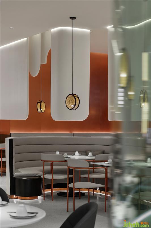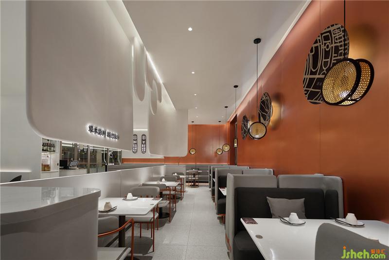 “横看成岭侧成峰”的厝头造型,实现空间互动,让潮汕建筑文化渗入餐厅肌理。 简约大气的动线布局和配色,优化感官体验,简洁时髦、干净通透、舒适开阔。轻复古风烧制青砖有序堆叠,留驻文化记忆,演绎出一个潮味生活方式。