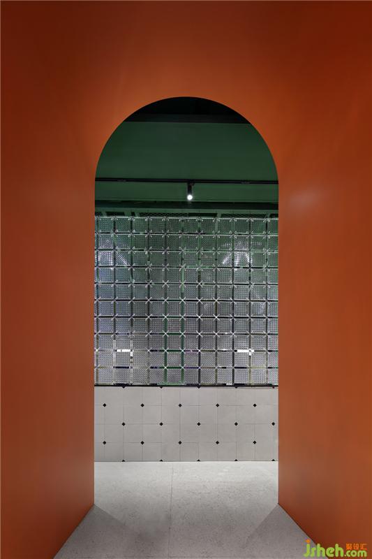 餐厅很通透,实体墙少,日照充足,两侧的阳光板过滤暖洋洋的日光,朦朦胧胧洒下一束束光影,为客人营造温馨的欢聚氛围。有如俯瞰屋舍的四方形剪影,也变身成拼花墙面砖,在餐厅里依次排开,构建着用餐仪式感。