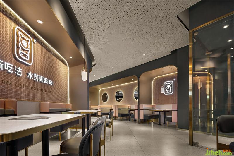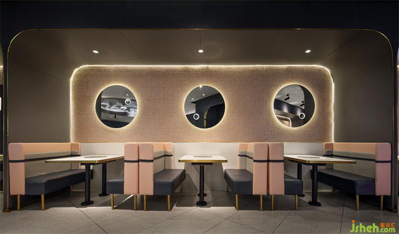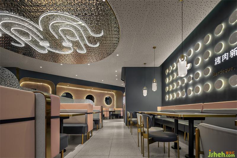 形似贝壳的卡座圆润可爱,水母灯饰一闪一闪,点亮深海,坐上潜艇,在视觉的深海里遨游,和小猪小牛一起在大战章鱼。 故事化场景空间捎带轻工业风,亲民的装饰风格契合大众审美,兰州餐厅设计将餐饮的互动性、趣味性淋漓呈现,助力品牌声浪在汪洋般的餐饮市场里扬帆远航。