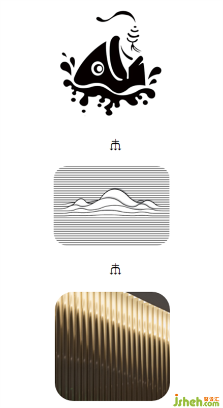 从场景中提取“弧形海浪、帆船之形、垂钓鱼竿”等