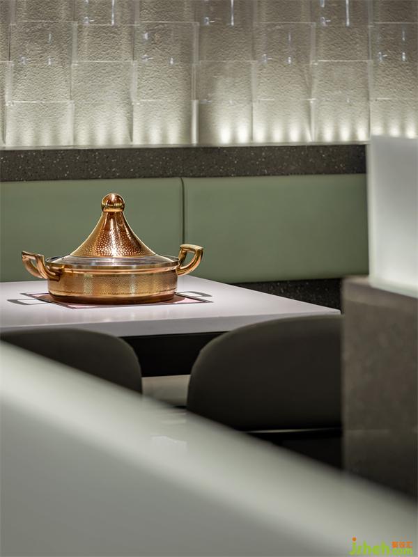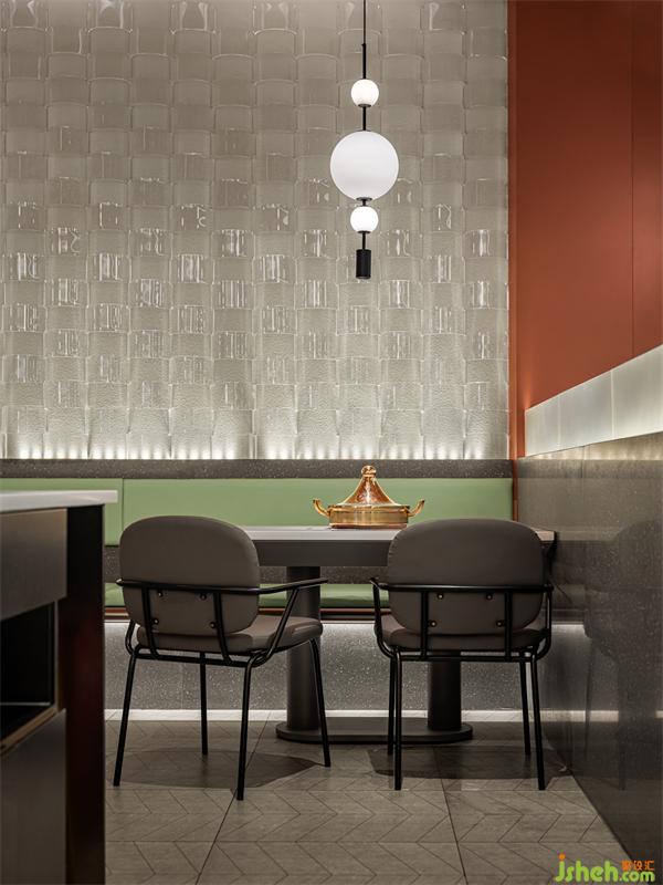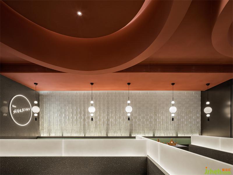 另一面墙,青瓦衍生的符号为装饰,将古建筑的肌理浸润空间,突出本案所表达的味蕾之城的艺术美感。