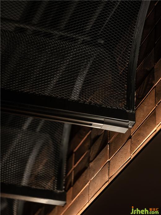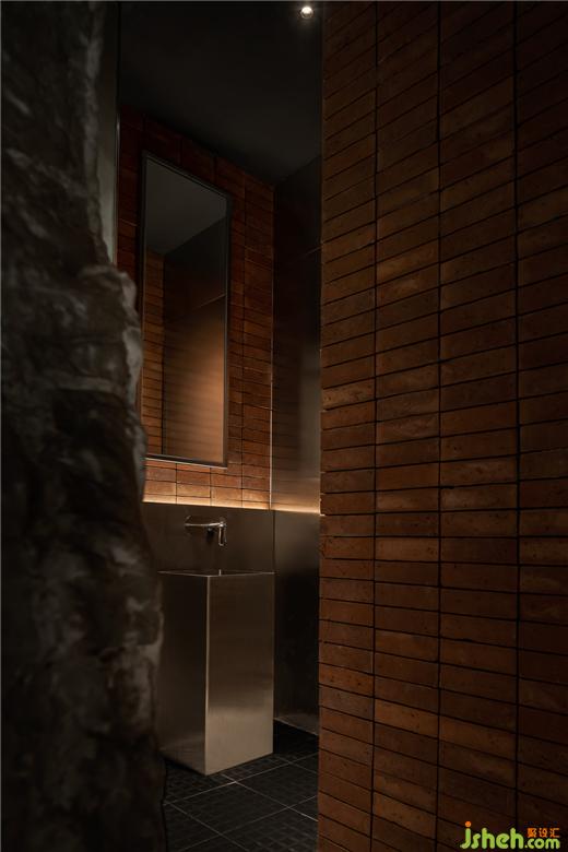 冷暖色阶过渡的光连通天花与酒架,而悬垂的破裂水泥墙与夯土红砖墙体,微缩凝结为“点石成金”的叙事艺术。当夜幕降临,LED灯光变幻,像饕餮盛宴,龙巢餐酒馆设计让视觉停留在落幕时刻。
