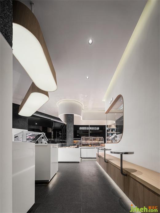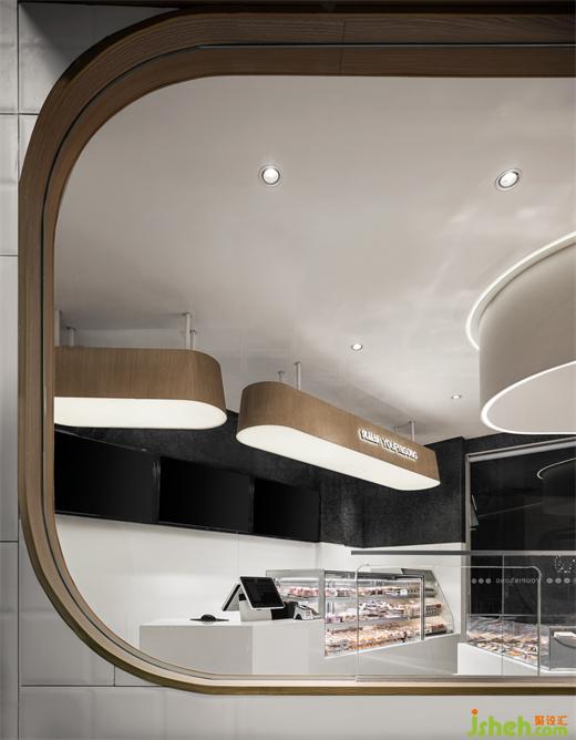 客人可以透过玻璃看到制作间面包师的制作流程,增加了食品健康的信任度。优品颂面包房设计以及品牌想传达的健康饮食的理念。