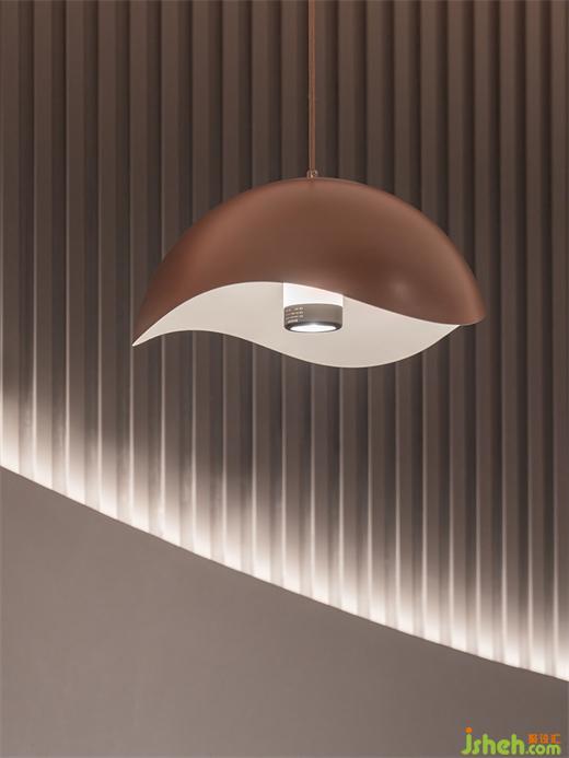 圆弧形向下勾勒的曲线,是渔船与海水连接的交界。从浪花线条中提取形态的灯具,点亮夜色下的航船。深水载舟,水波与行船摇摇晃晃,静谧和谐。