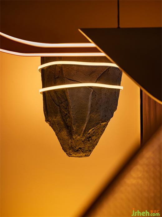 凹凸不平的塑石假山墙面象征崎岖的火星地表,天然的形态岩色在时尚现代的装潢中增添一丝完全不加修饰的原始朴素美感。