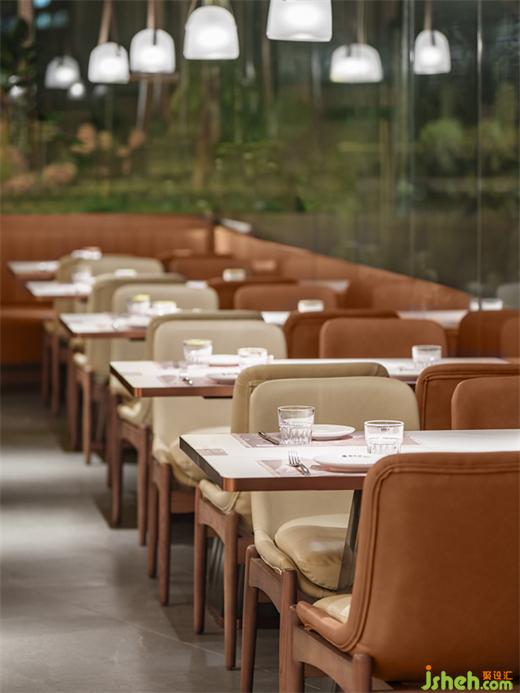 餐厅设计沉浸式的环游动线,蕴藏着未知场域的神秘,莫名的好奇心牵引消费者开启深入探索的旅程。水流的律动形态贯穿整个空间,在蜿蜒与起伏之间捕捉形体的韵律,令人联想到流觞曲水的热闹景象。笔触大胆、色彩丰富的抽象线条画无声地带来震撼视觉的艺术美感。